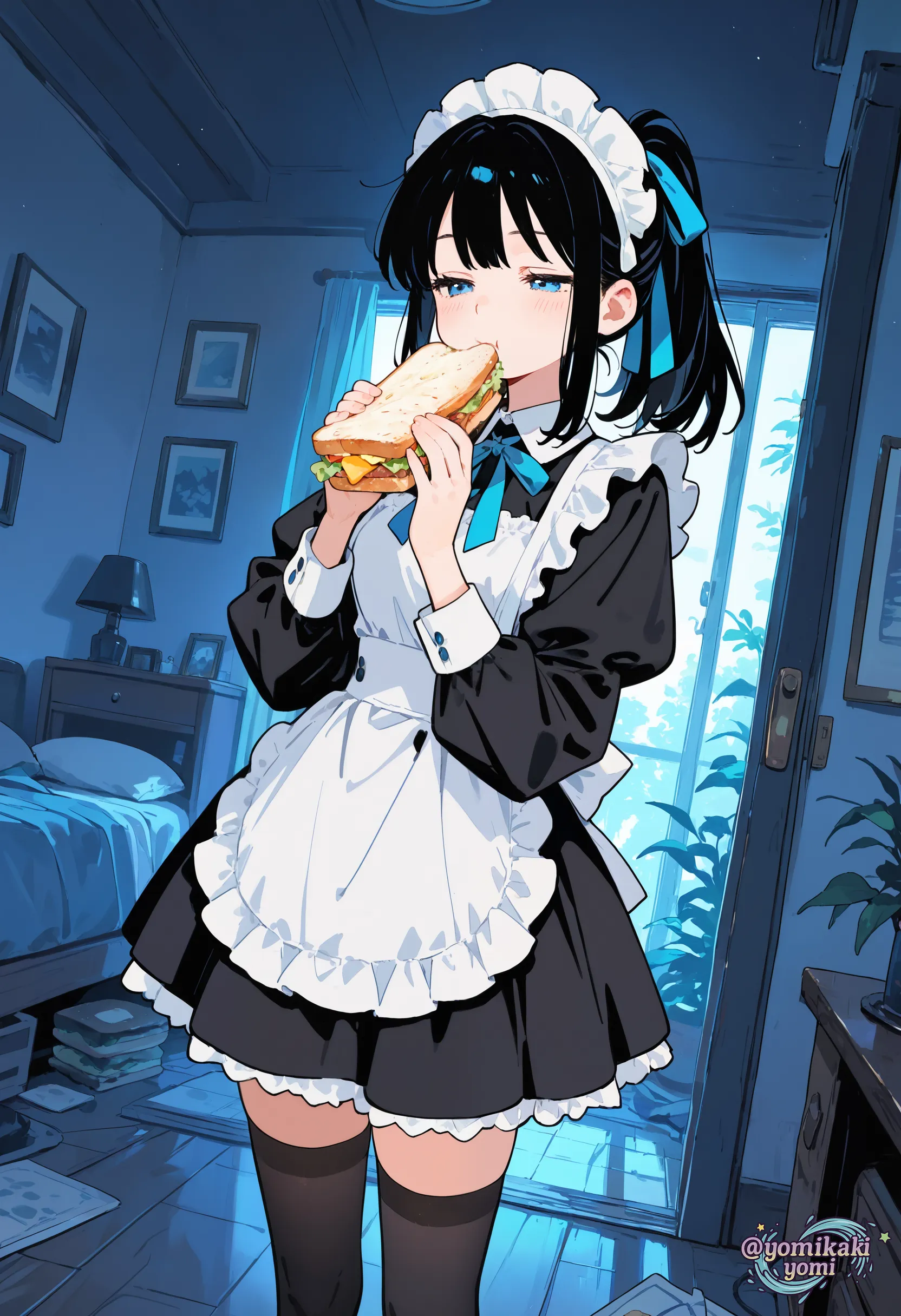メイドさんは体力使うので朝はしっかり食べないといけないですもんね🤤 部屋の色調が全体的に青なところも良いですね☺️
