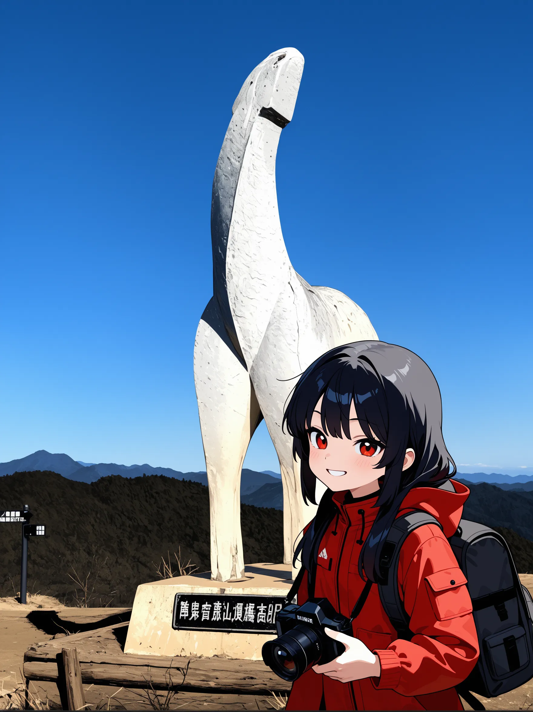 Girl Rejoicing with Mt. Fuji in the Background