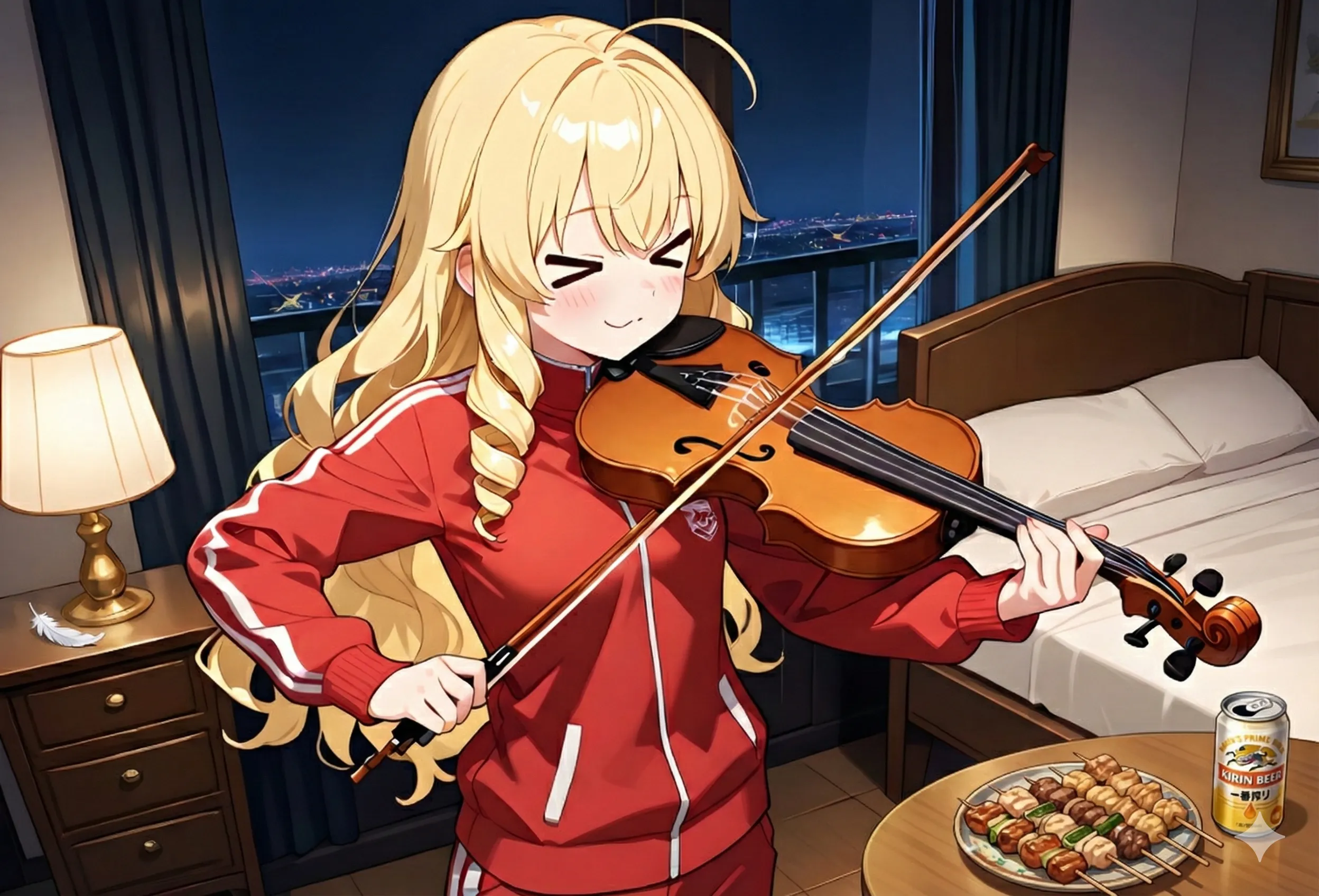 やはり令嬢とバイオリンとジャージと焼き鳥とビールの組み合わせはしっくりきますね