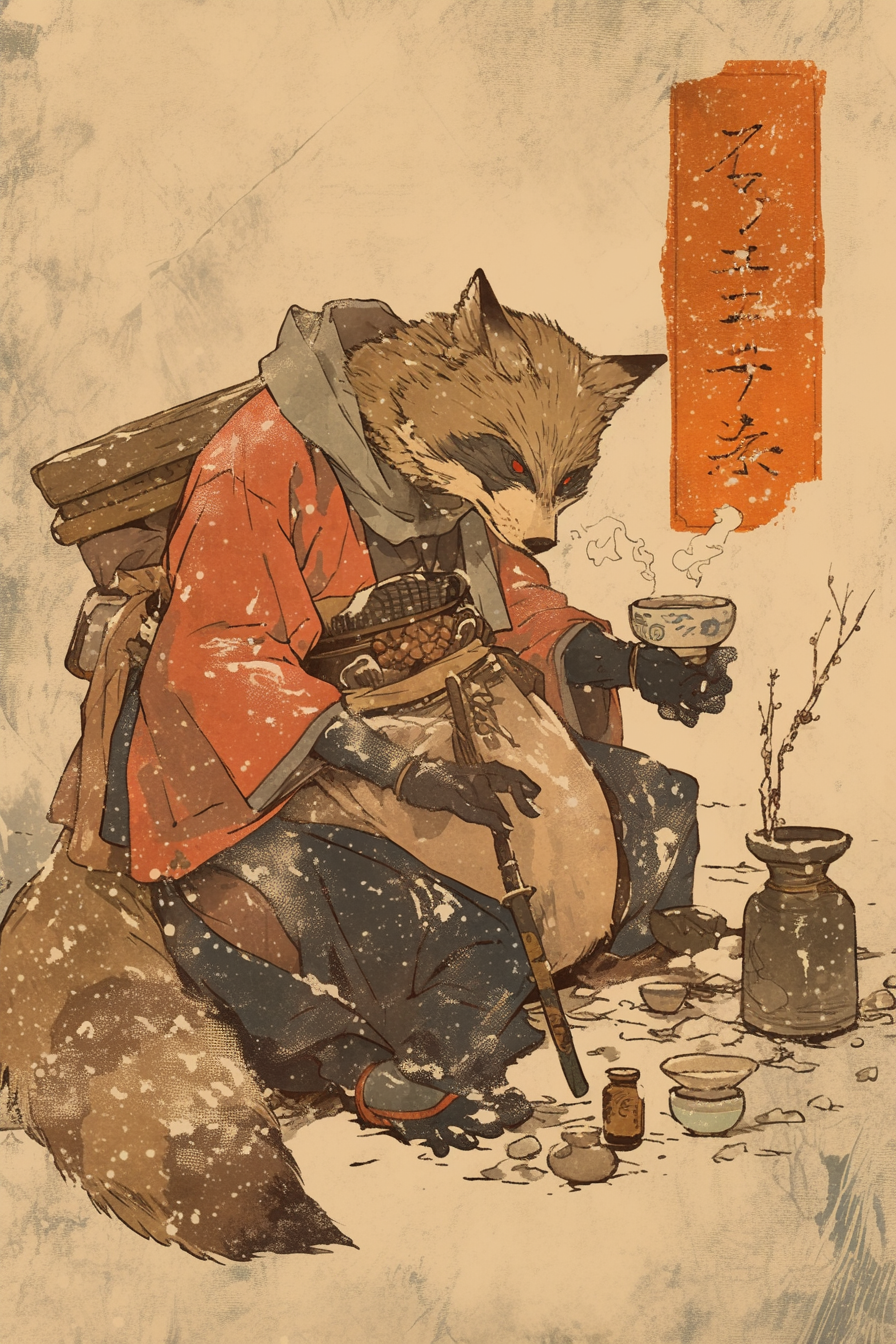 Fox's Drunken Rest in the Snowy Forest