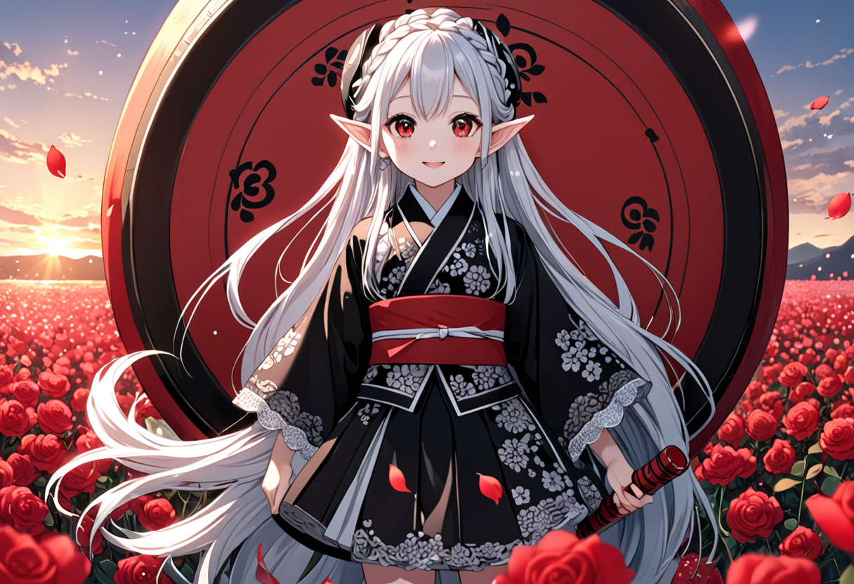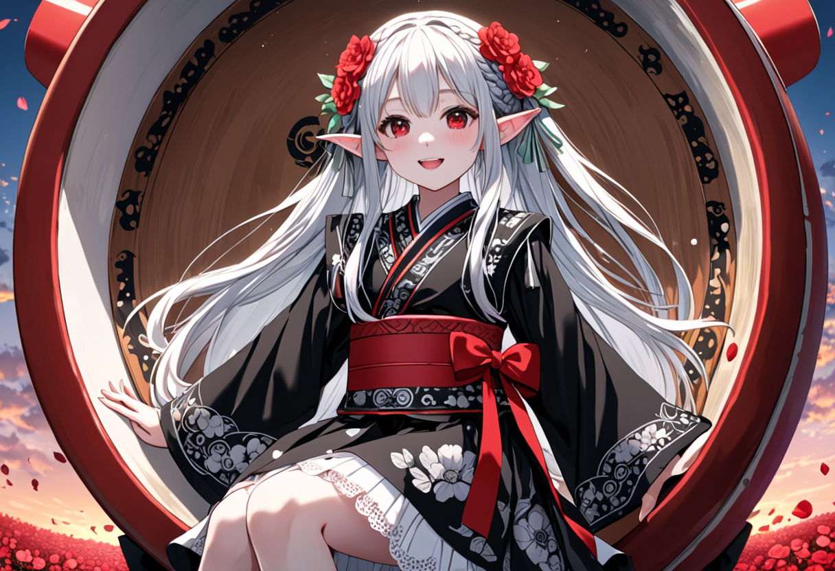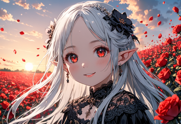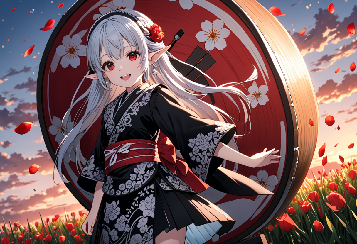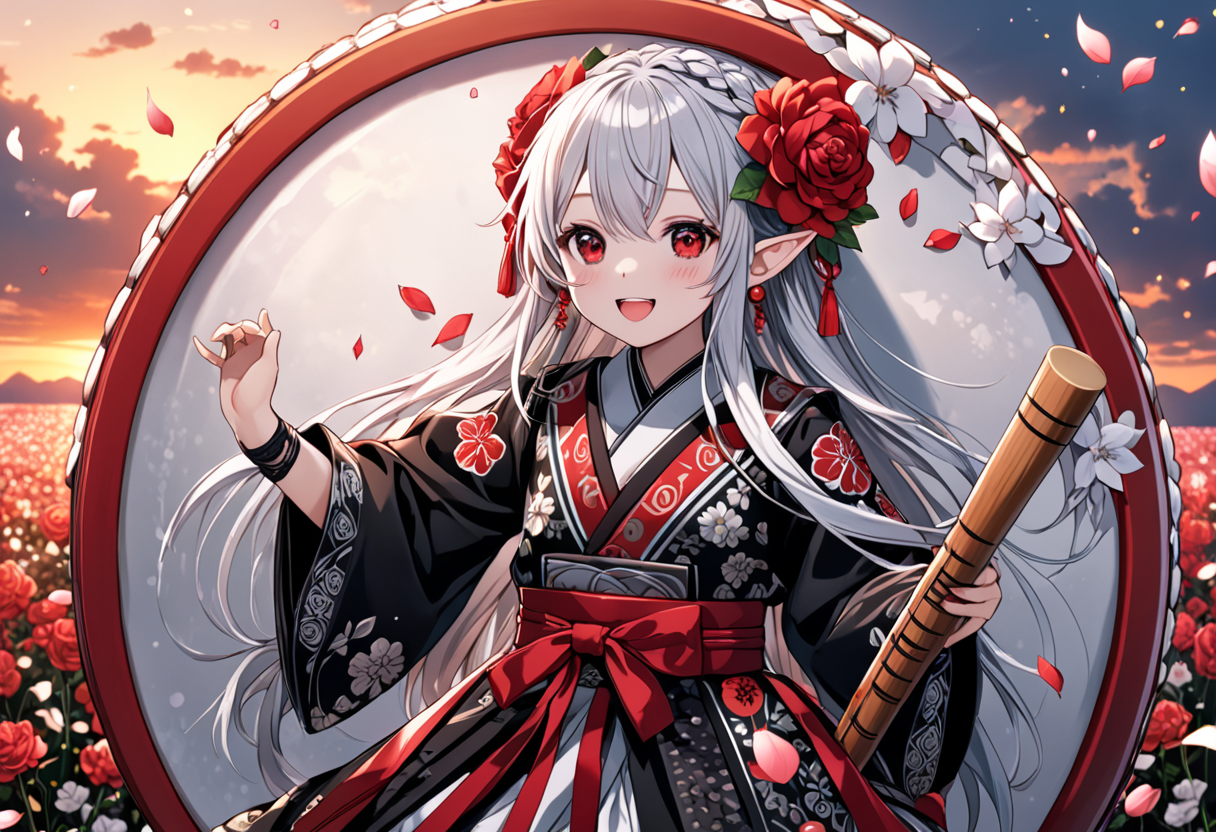 Silver-Haired Miko Dancing in the Red Flower Field