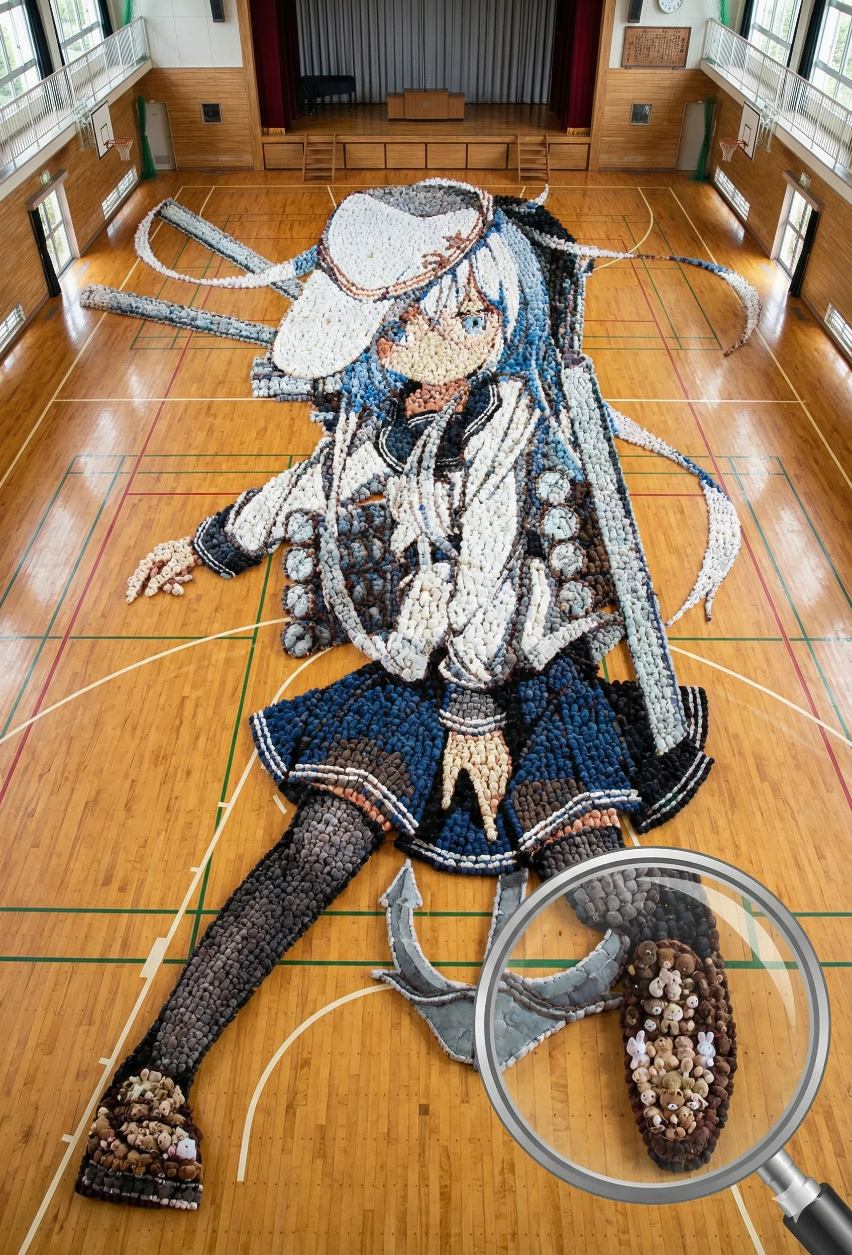 イラストのぬいモザイクアートを完成させるのに、制作時間やどのくらいのぬいぐるみが必要なのか気になっちゃいましたw