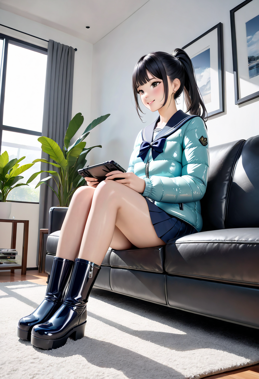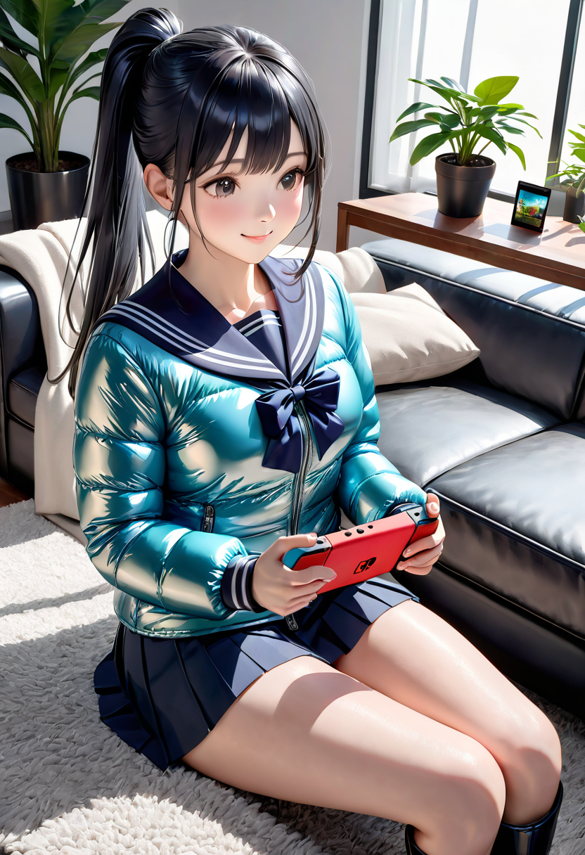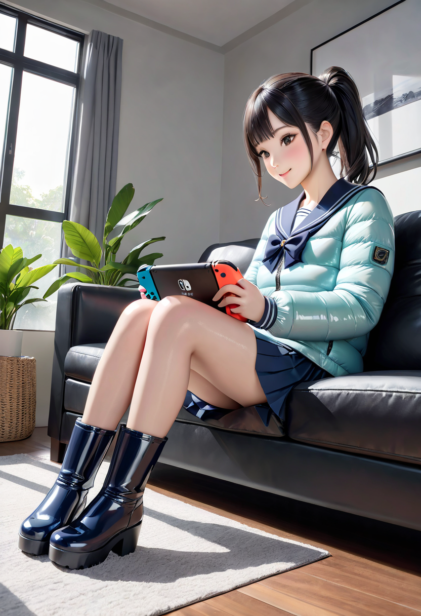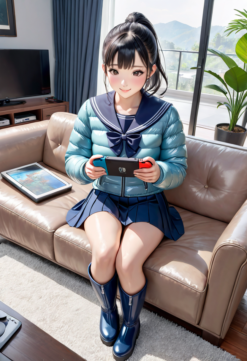 TVゲームに興じるJK
