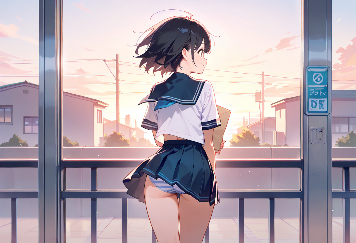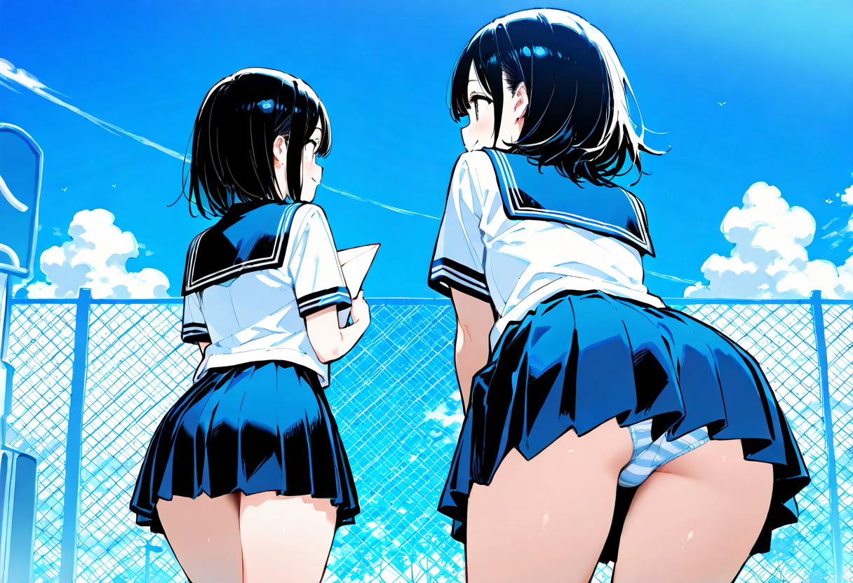 爽やかな朝の縞パンですね。一日の活力になります