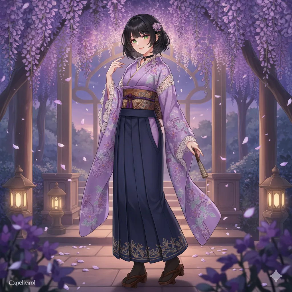 Promise Under the Wisteria Blossoms at Dusk
