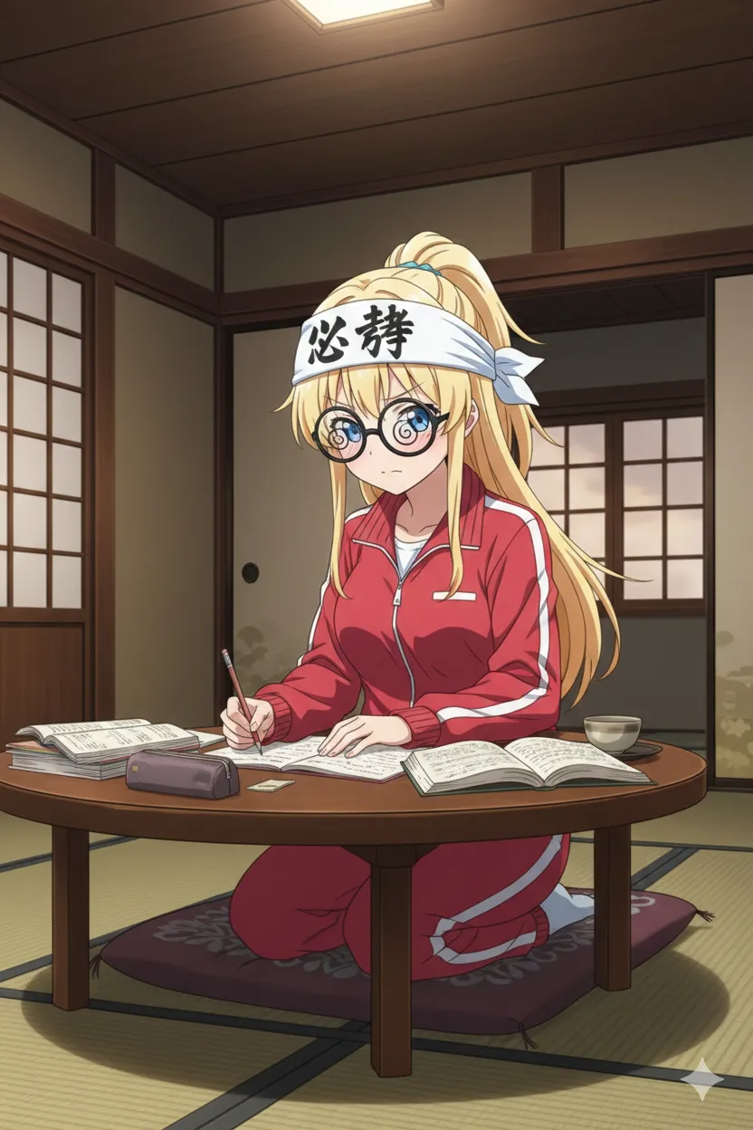 部屋の机で勉強してと指示したら学校の机ばかり生成されてしまうので、ちゃぶ台にしました🤤