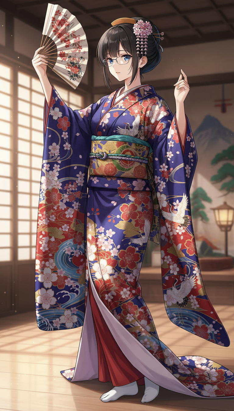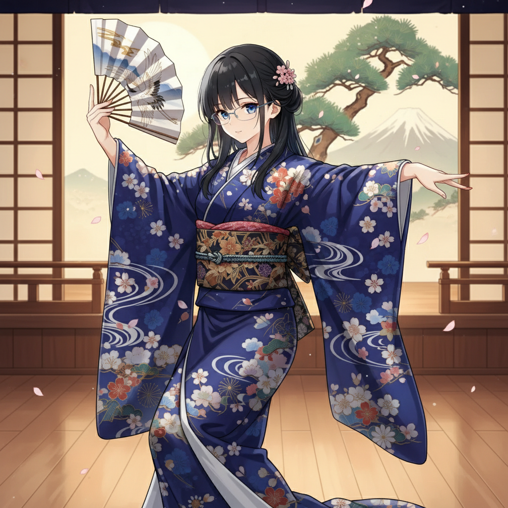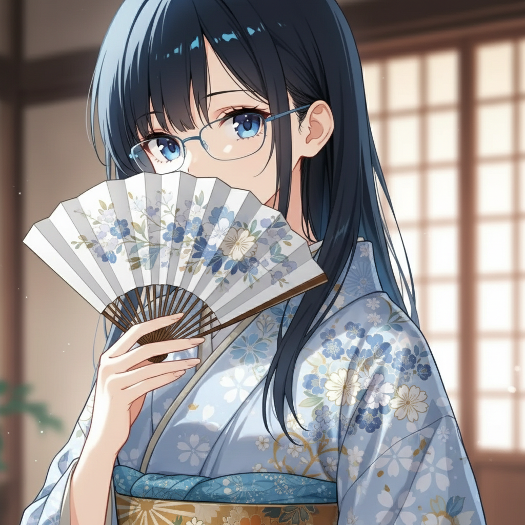 実は、3枚目だけは別プロンプトで、「和服の美少女、片手に扇子を持ち、扇子で口元を隠している、上品な微笑」で生成しています 口元を隠しているので何を言っているかわかりませんね… (^^;