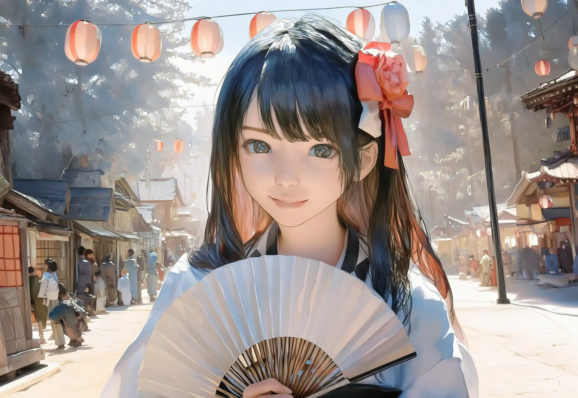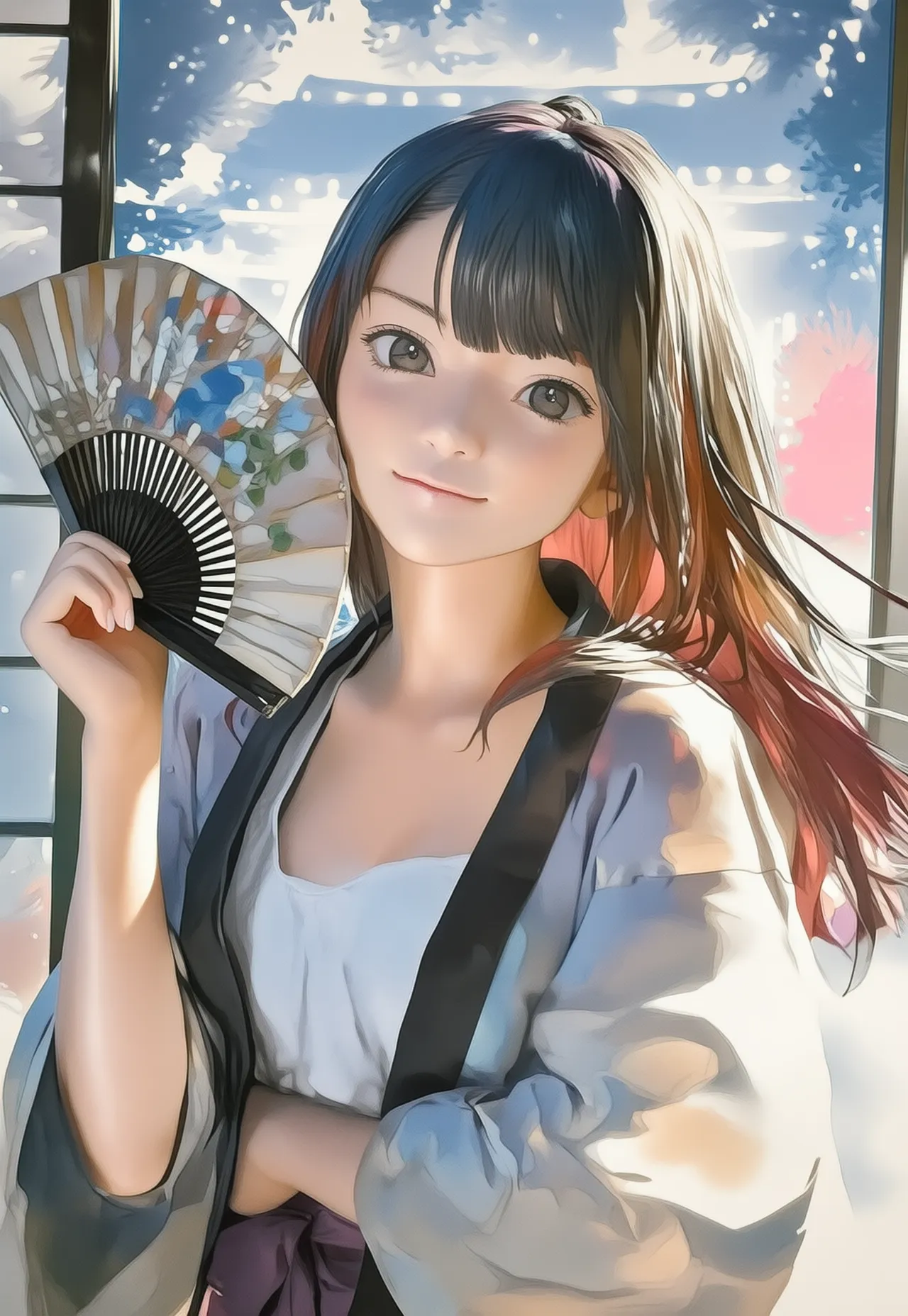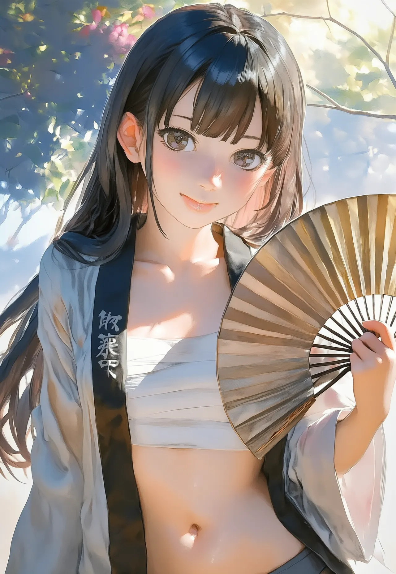 Beauty with Fan in Cherry Blossoms