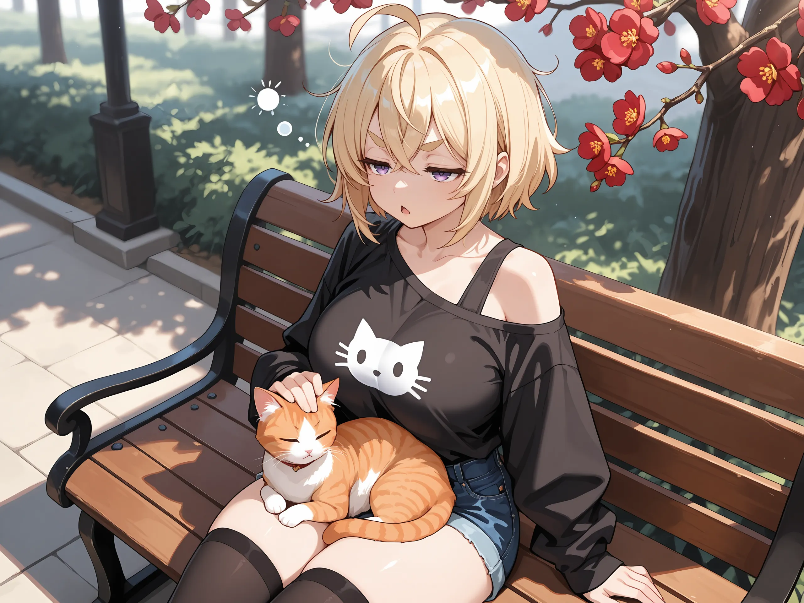 にゃんにゃーの時点でイイね👍を押してる… 肩出し、寝ぼけ眼…良いですね! (太ももガン見)