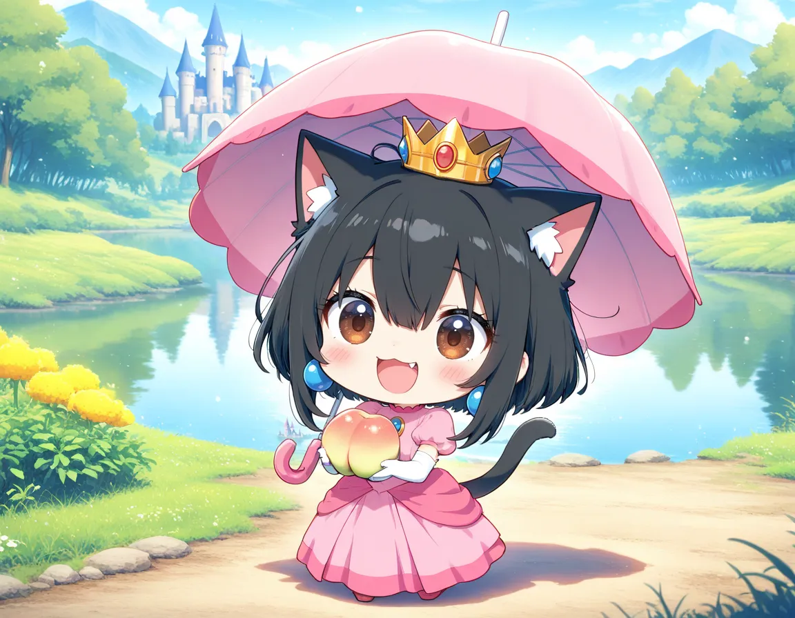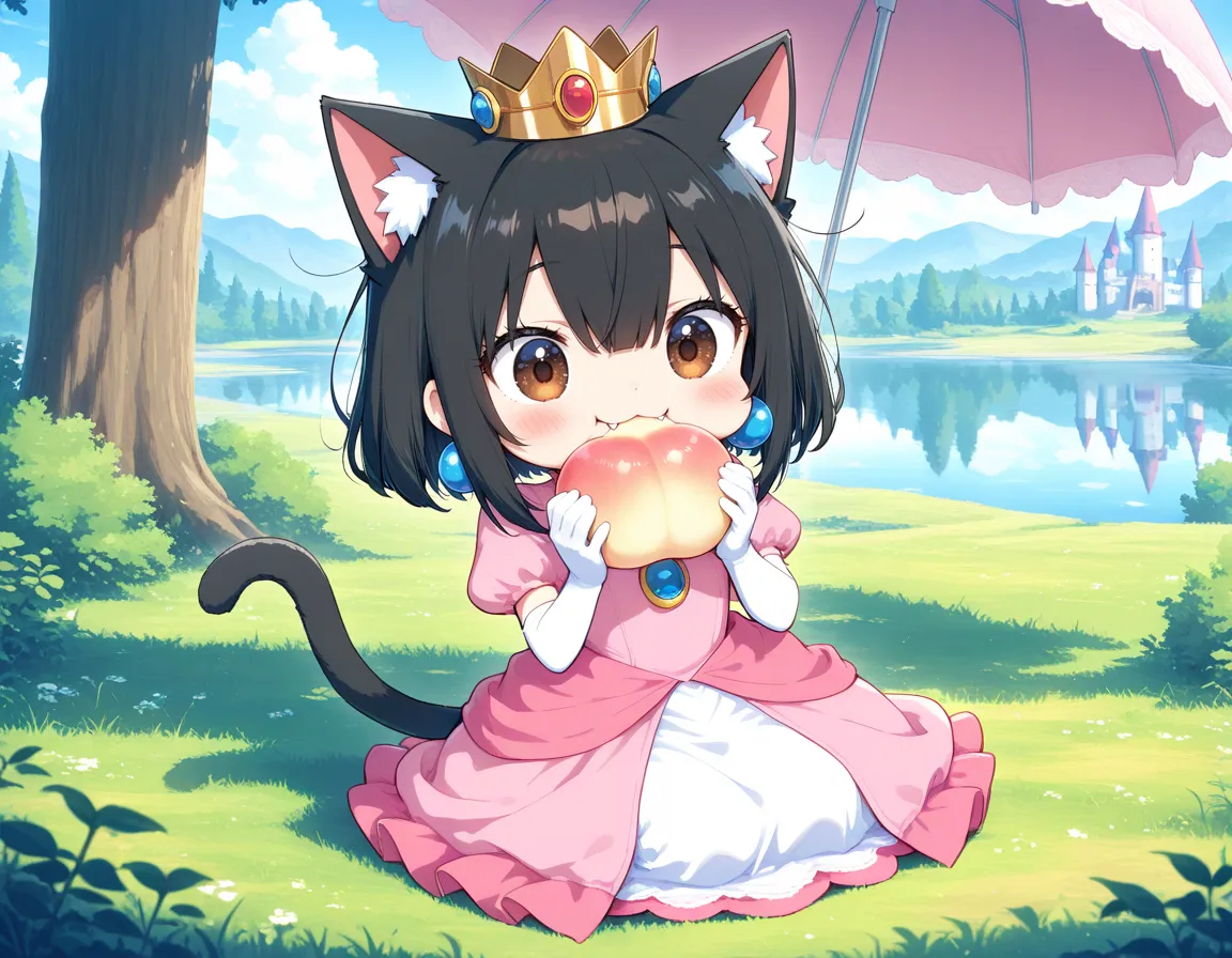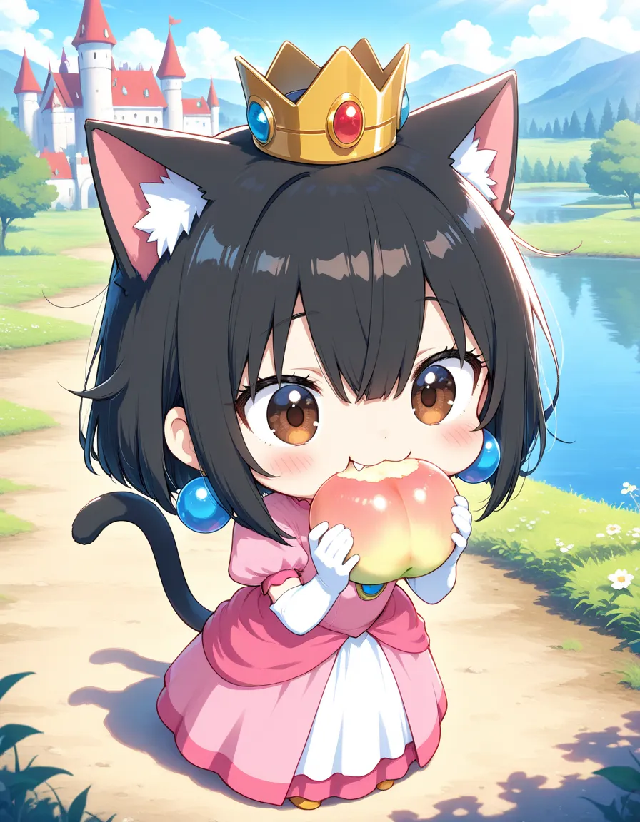 ピーチ姫コスで桃を食べるニャ♪