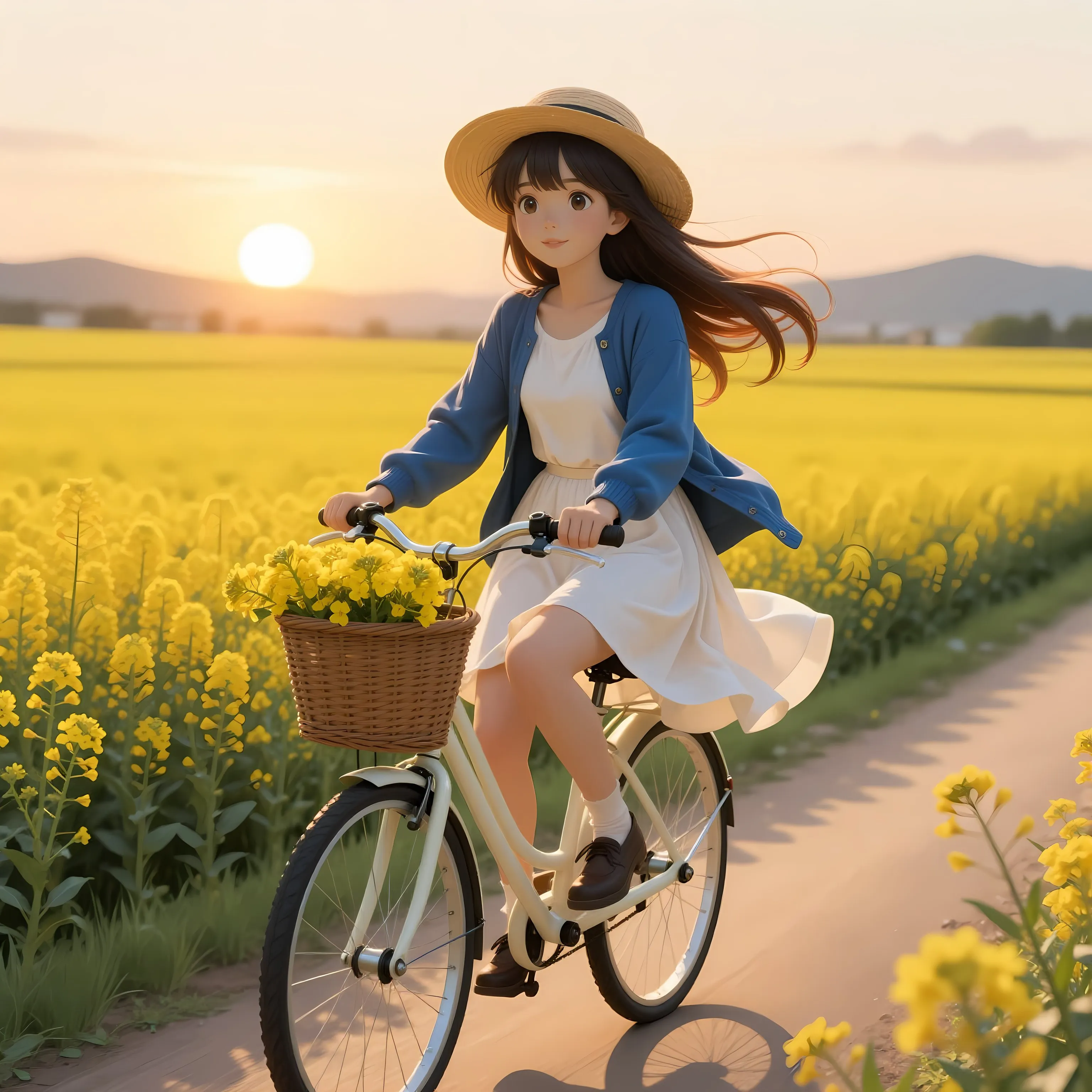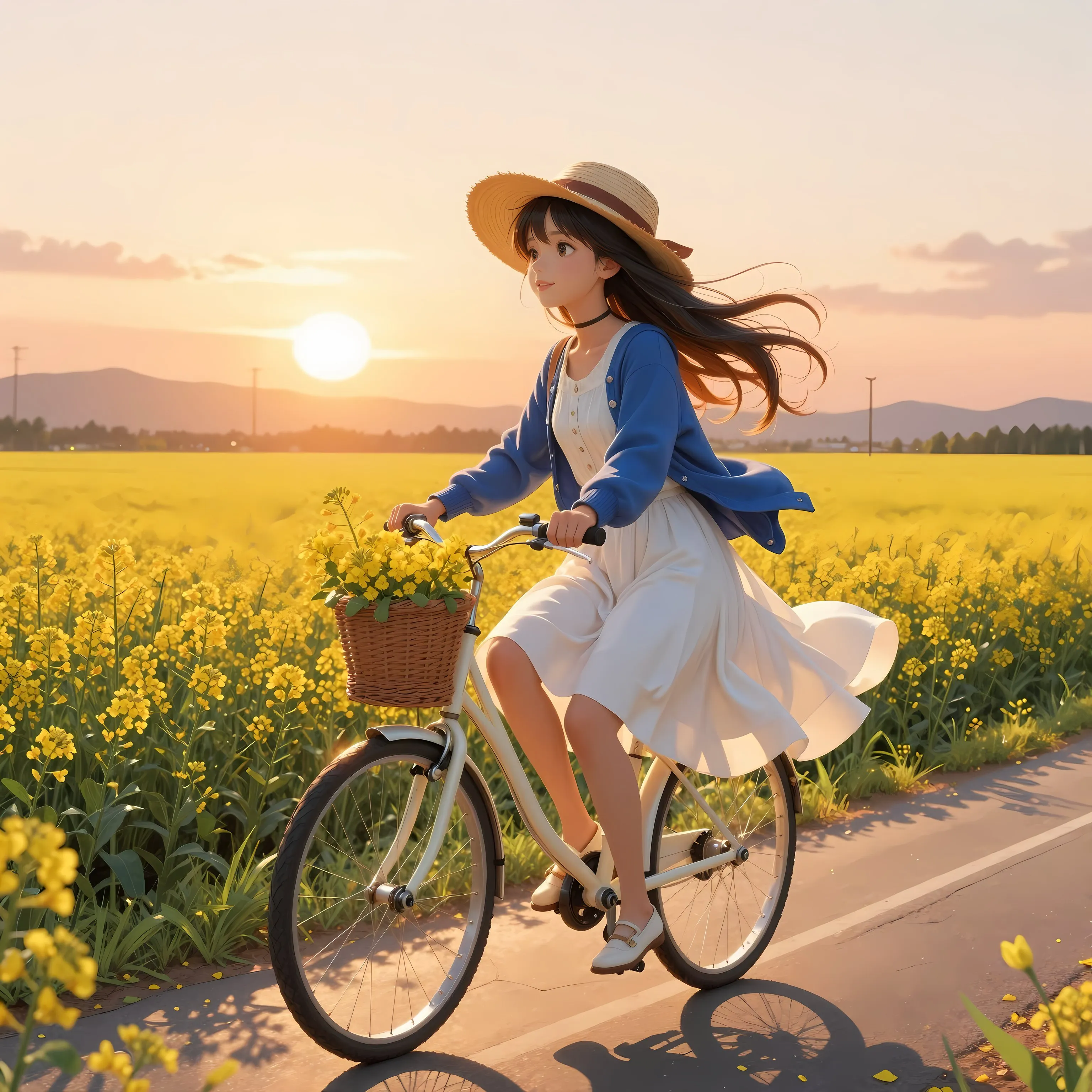 Girl Racing Through Golden Fields at Sunset