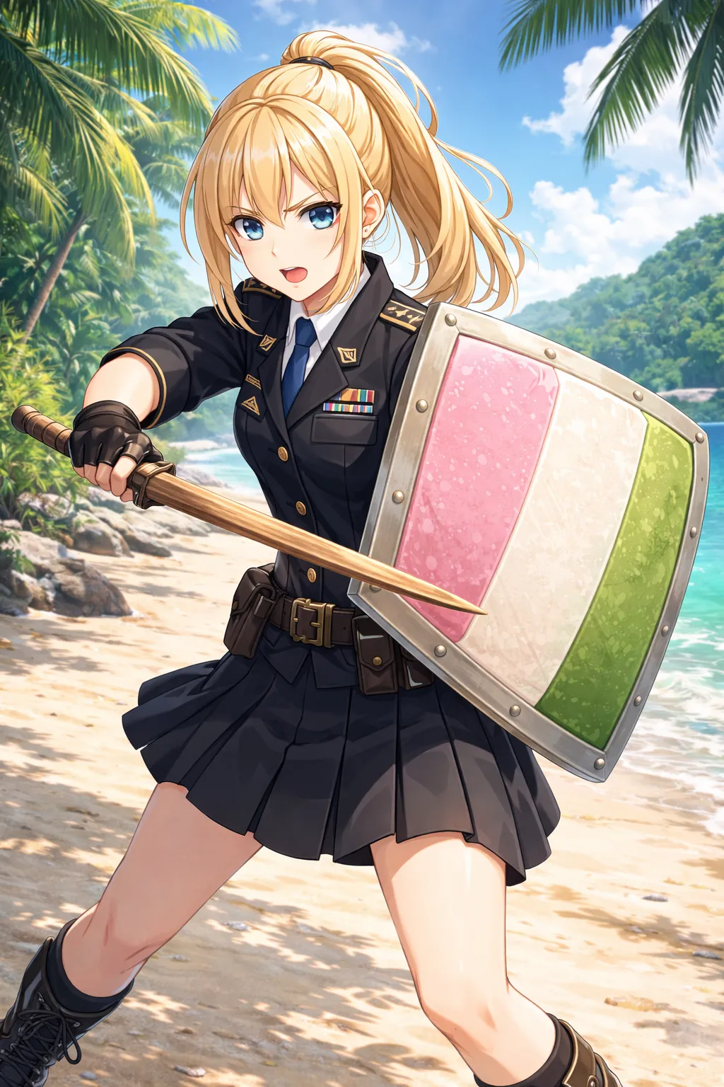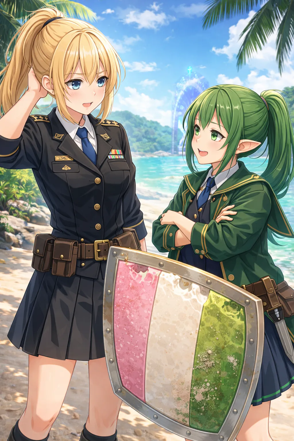 確かに形状はすごく盾っぽいなこれ…! 『桃』のお題でアイピク島企画のために料理人としてチェルキーちゃんお借りするかもしれません。(うちのエルフ姫とは別のキャラとのコラボです)