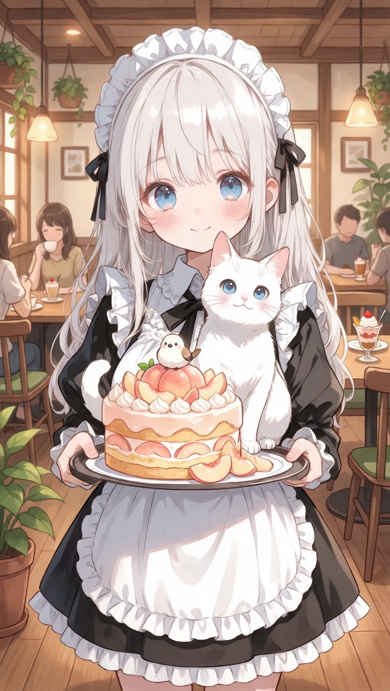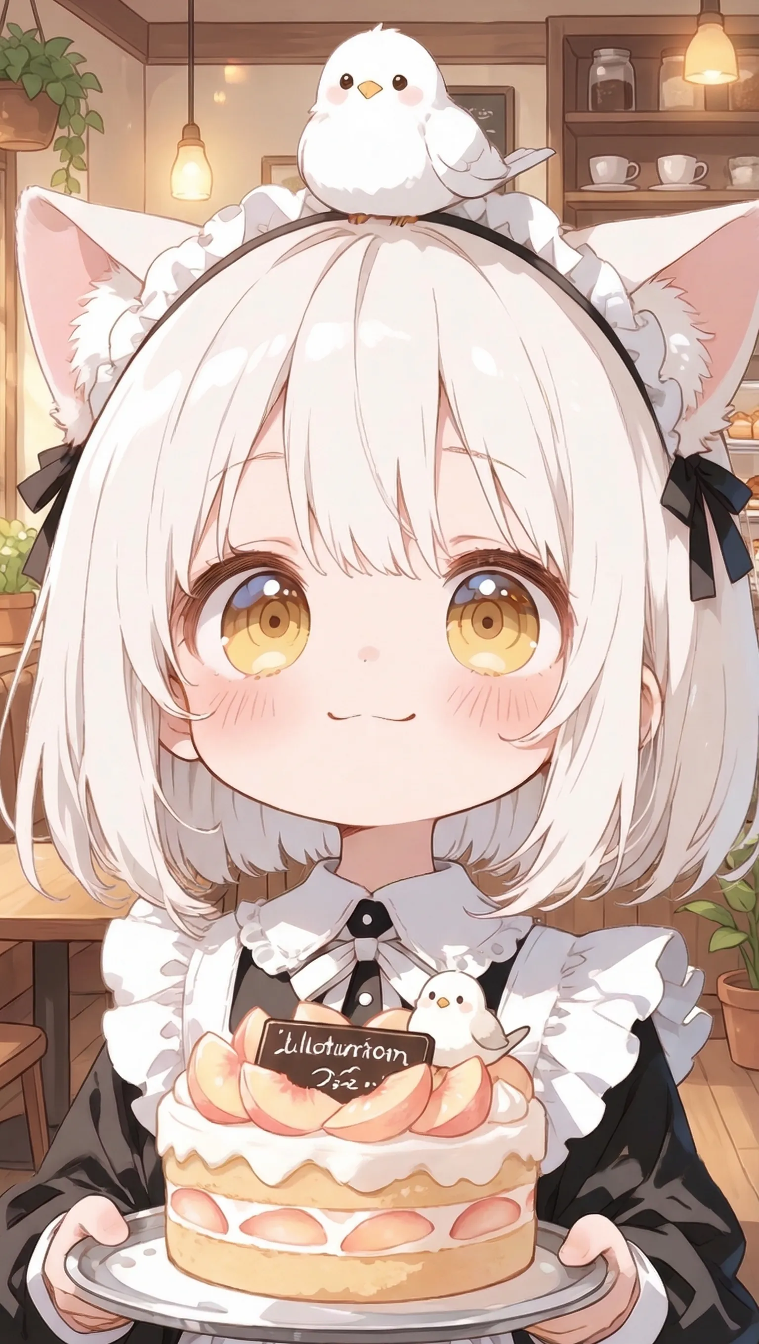 桃ケーキ美味しそうだわん! ケーキに飾ってある白雀ちゃんの飾り?可愛いぴょん!