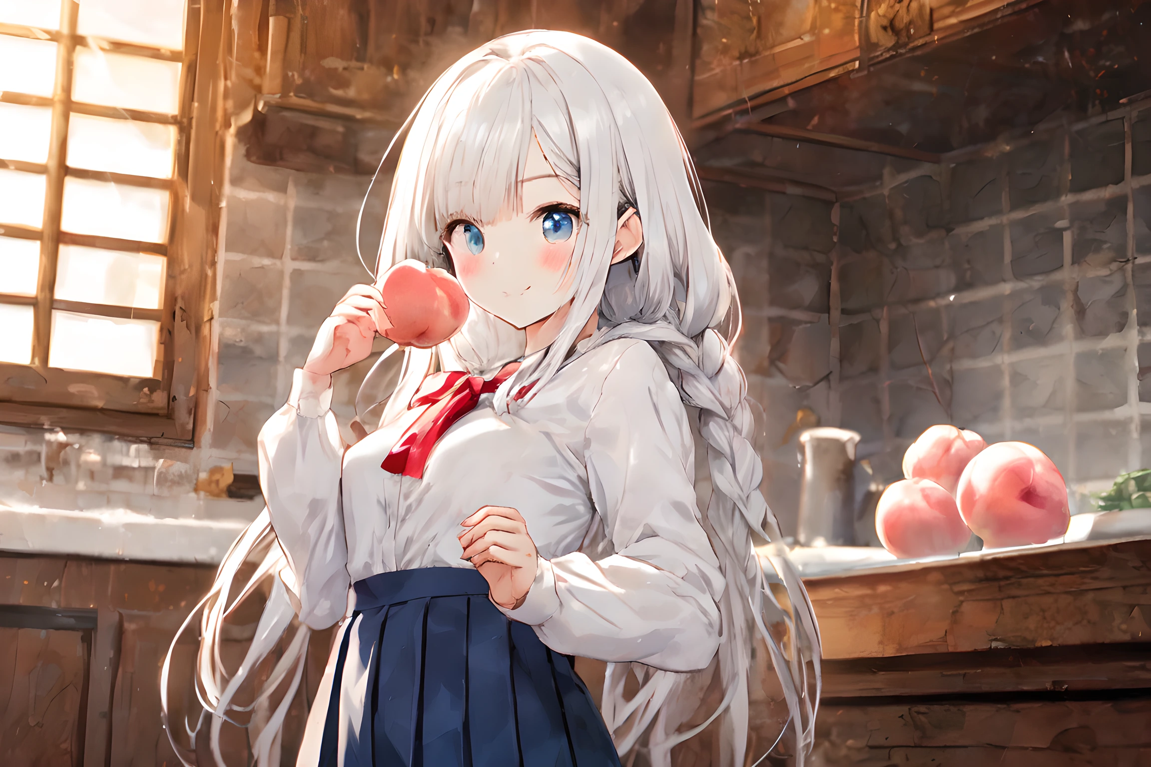 白桃を持つ少女とおまけのピーチタルト