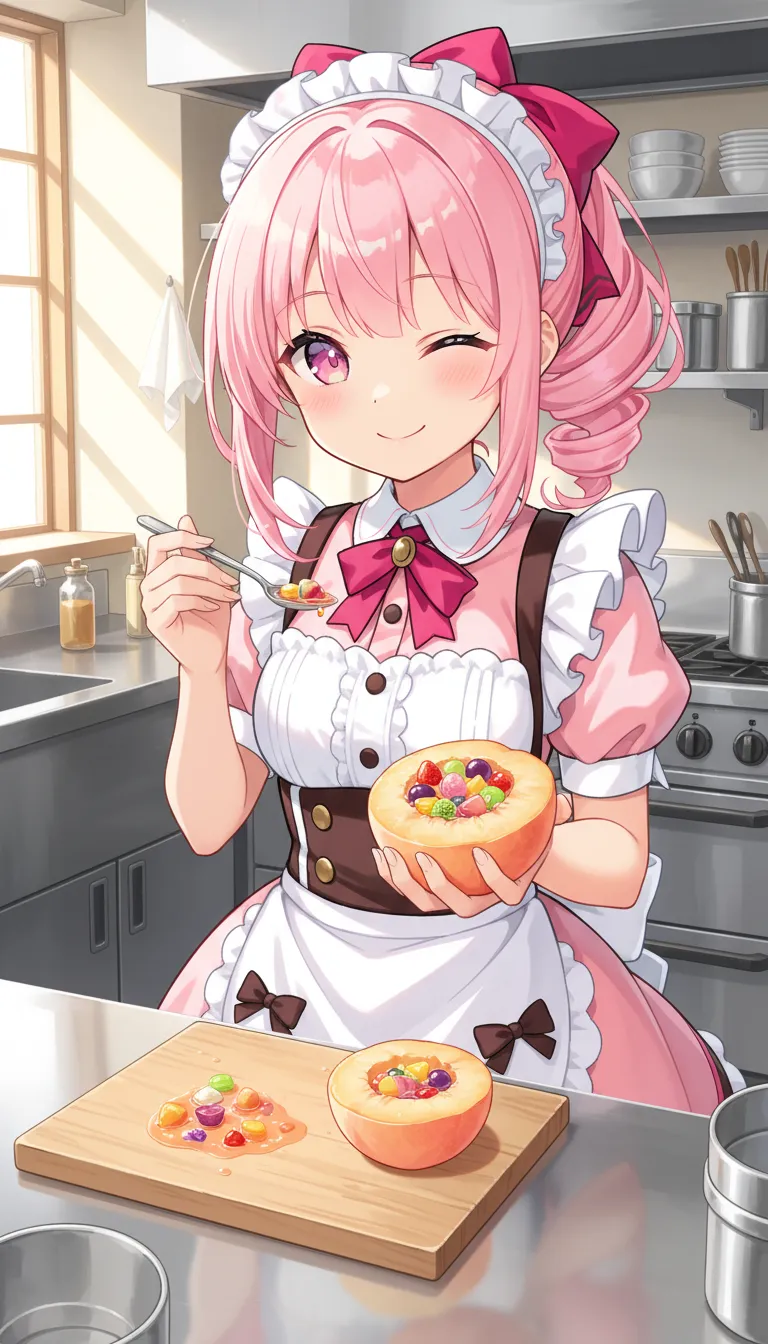 テーマが桃の時点でスイーツを作ろう、あとせっかくだし桃色の容姿にしようと決めてたので、今回は深く考えずに生成出来ました🤤