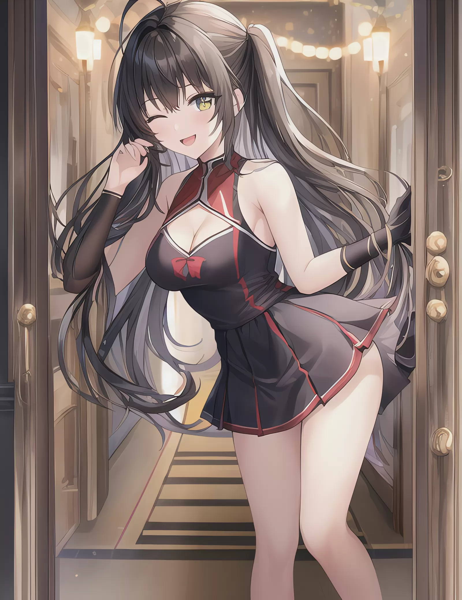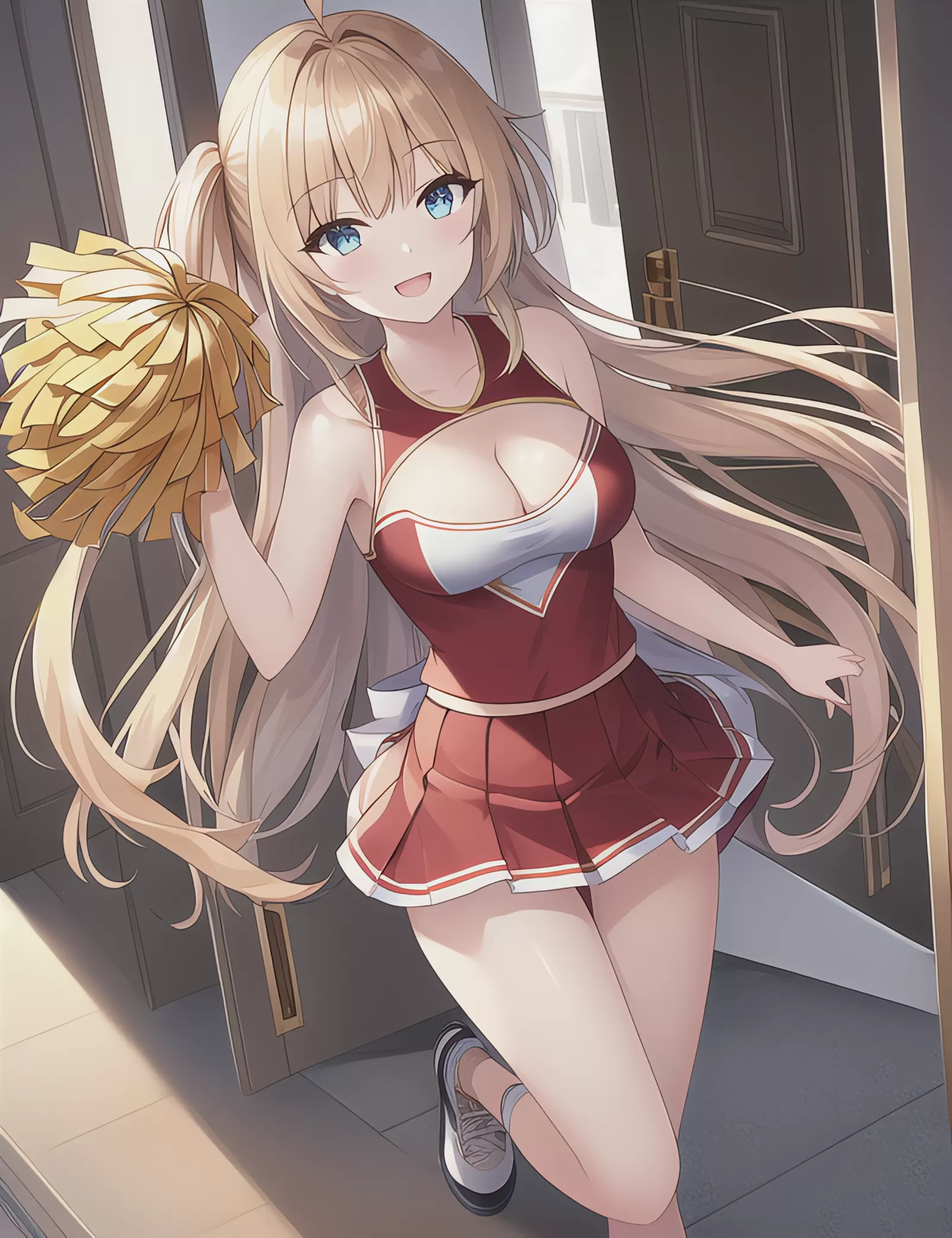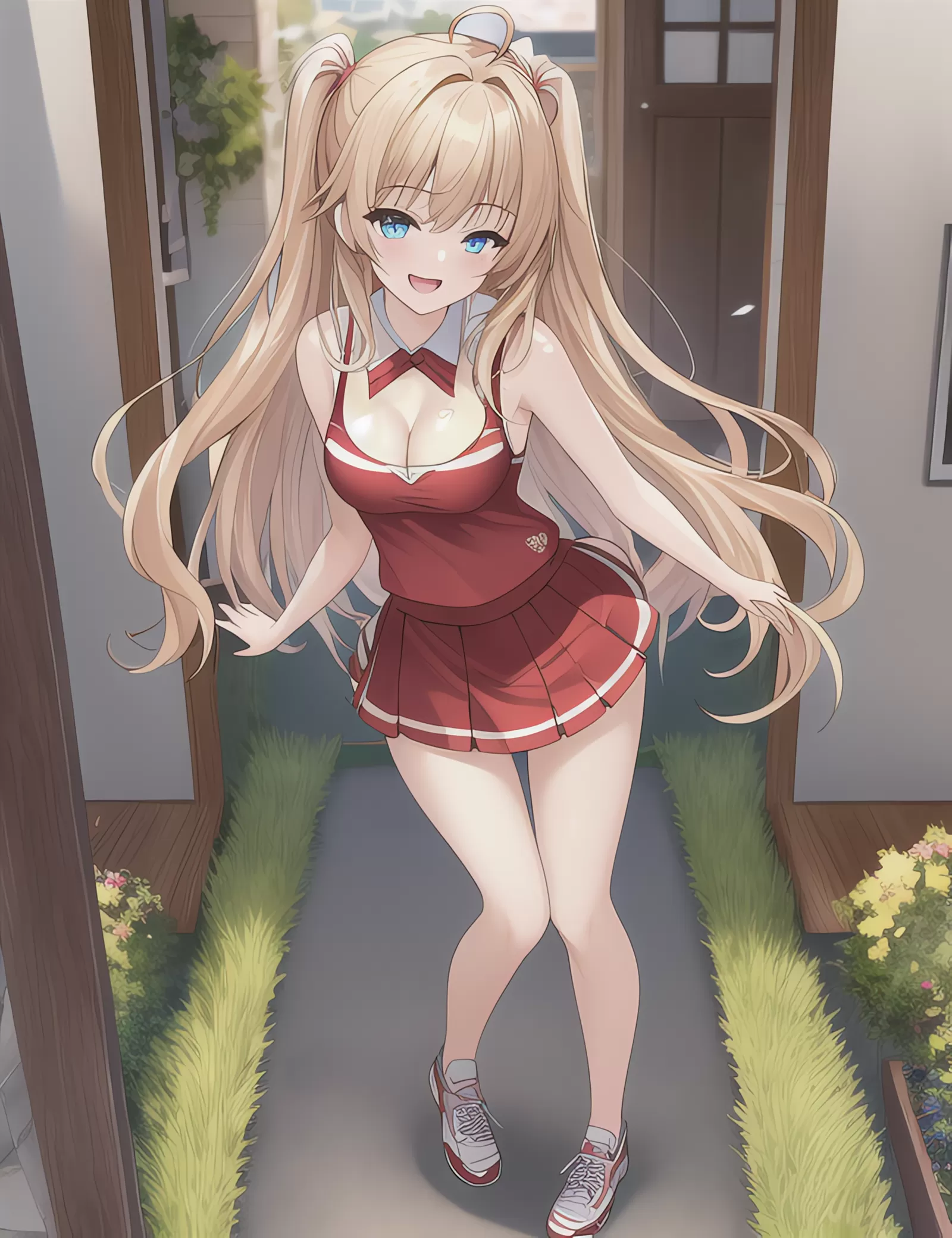 玄関で応援してくれる彼女