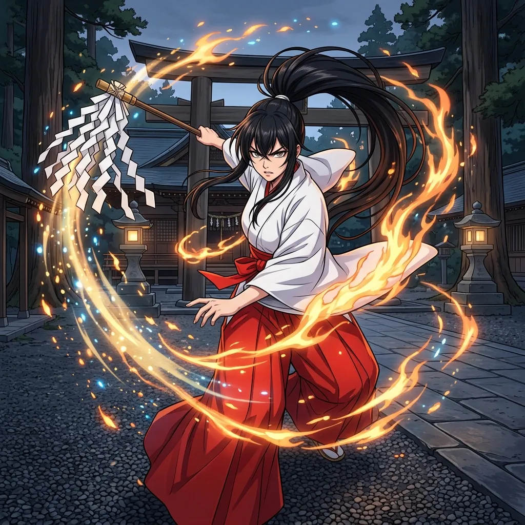 Fire-Wielding Miko