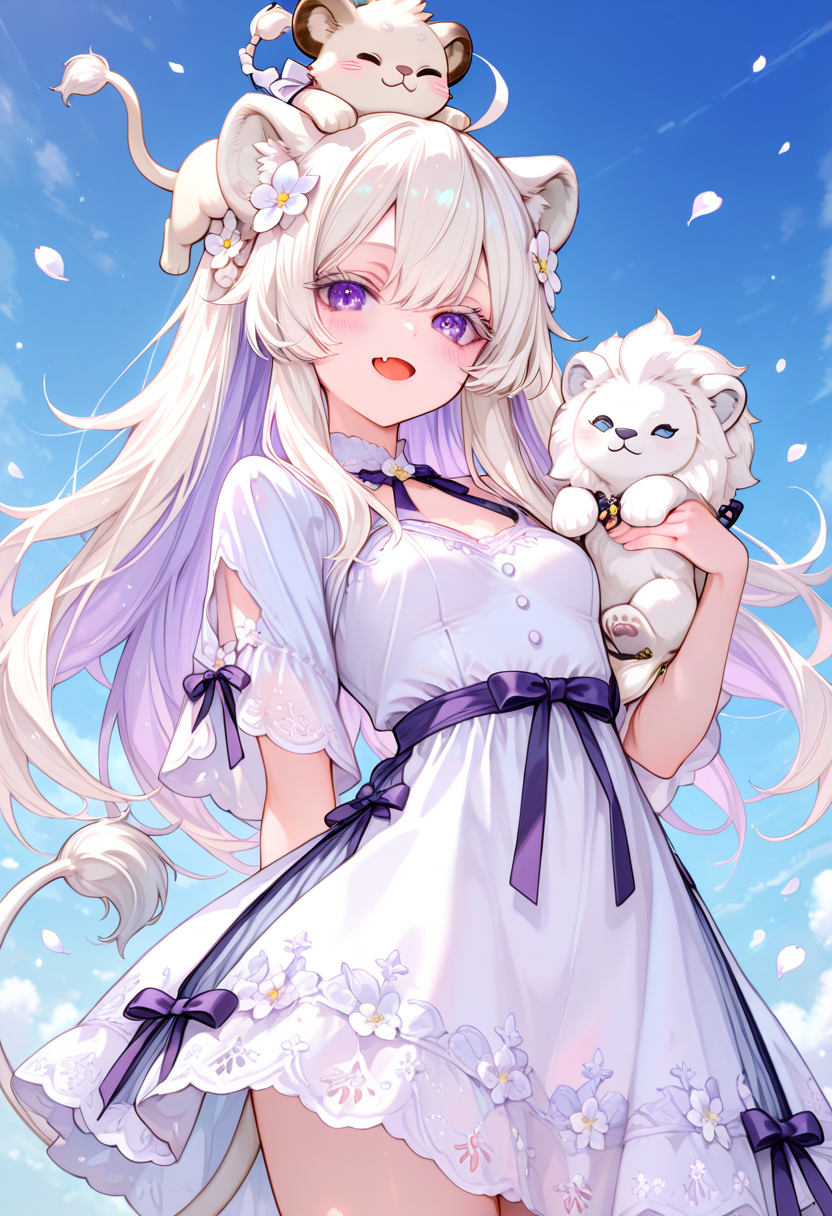 (衣装のプロンプトを使いまわしたらホワイトライオンちゃんの服用の紫ラインが残ったまま作っちゃったのは秘密だ…!)