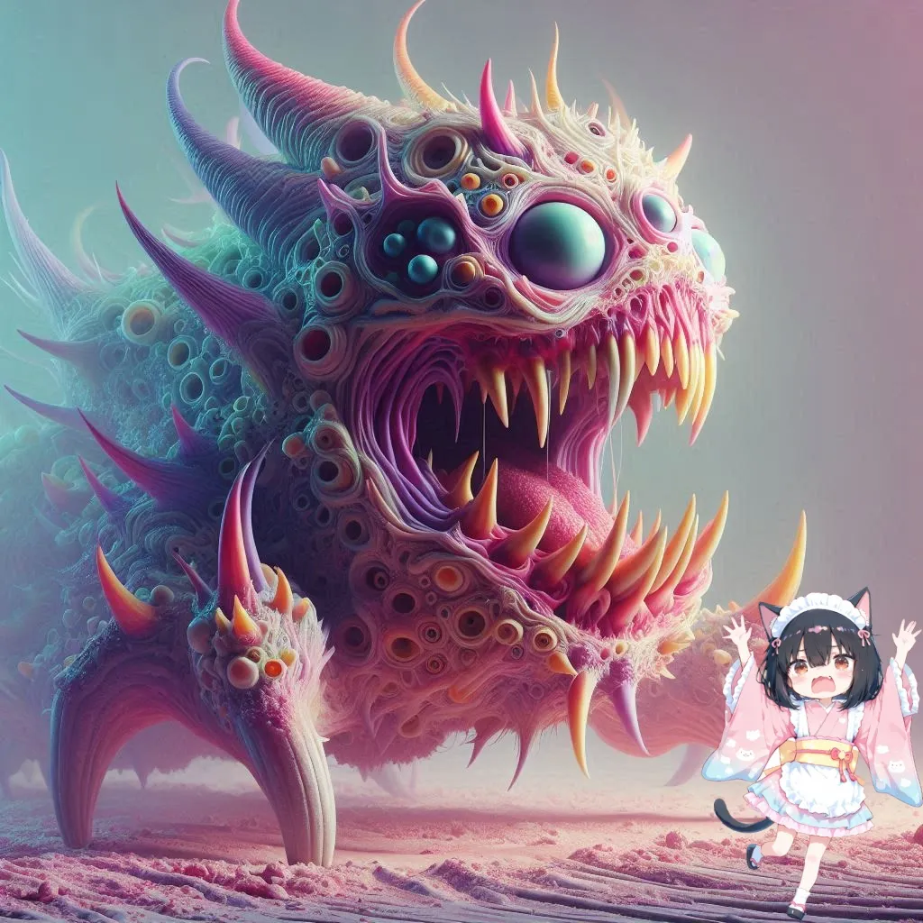 パステルカラーの怪物・・・大怪獣パステルカラ(https://www.aipictors.com/posts/579623)の仲間かなぁ?