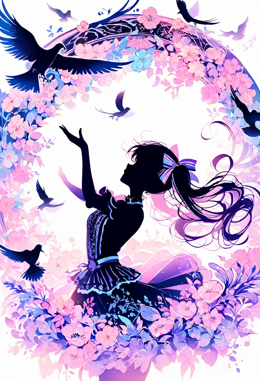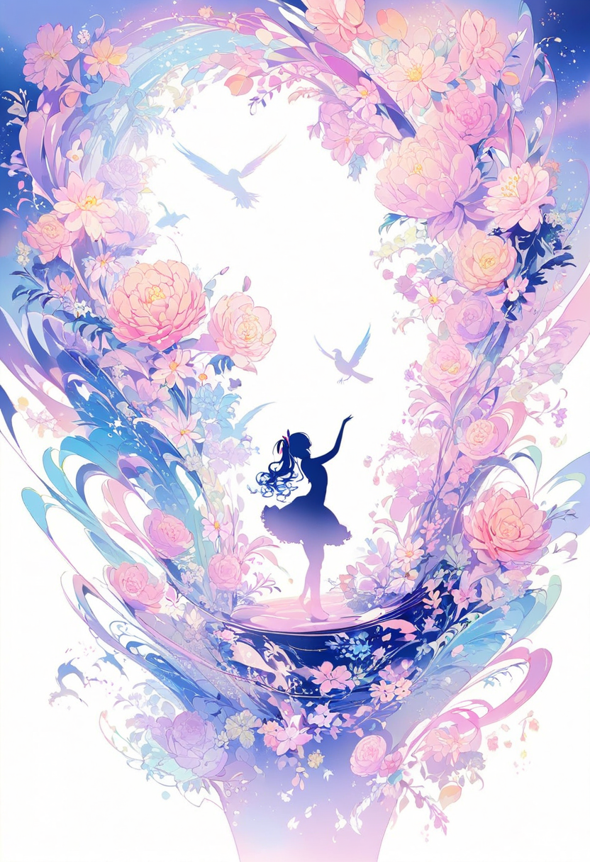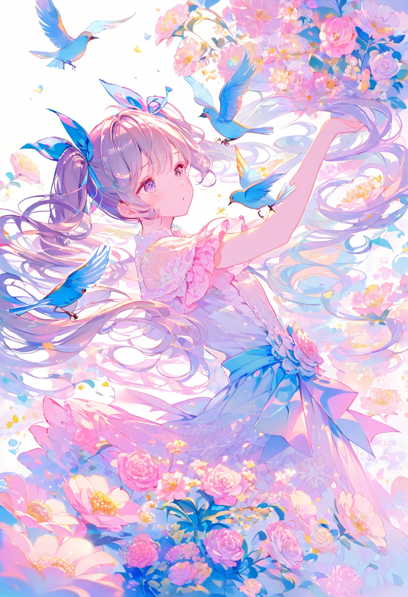 In a fantastical forest, a girl lost in wonder reaches toward a swirling sky of vibrant clouds, accompanied by her loyal cat companion. This is the boundary between dream and reality, woven with rainbow lights in a mysterious realm. Her dress dances in the wind, marking the start of an unknown adventure. The cat's eyes reflect her courage and curiosity. What story will you weave in this dream world?