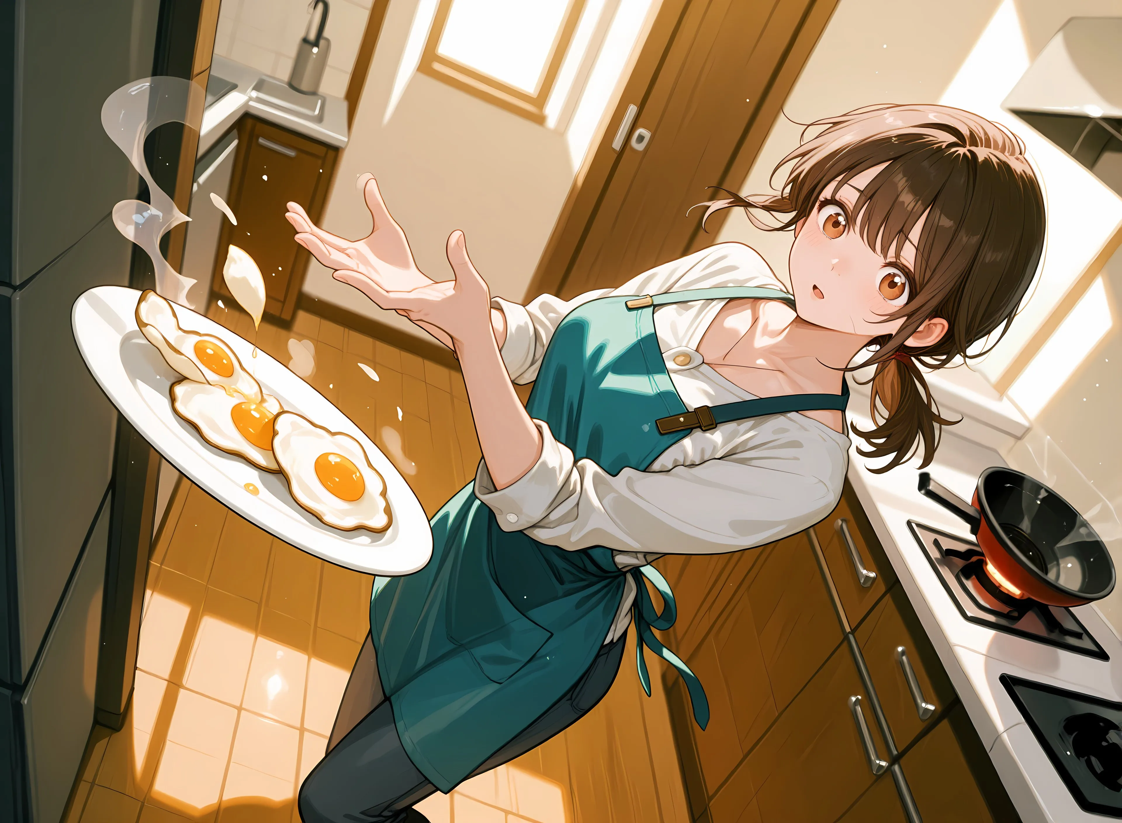 Flying Fried Egg in the Morning Kitchen!