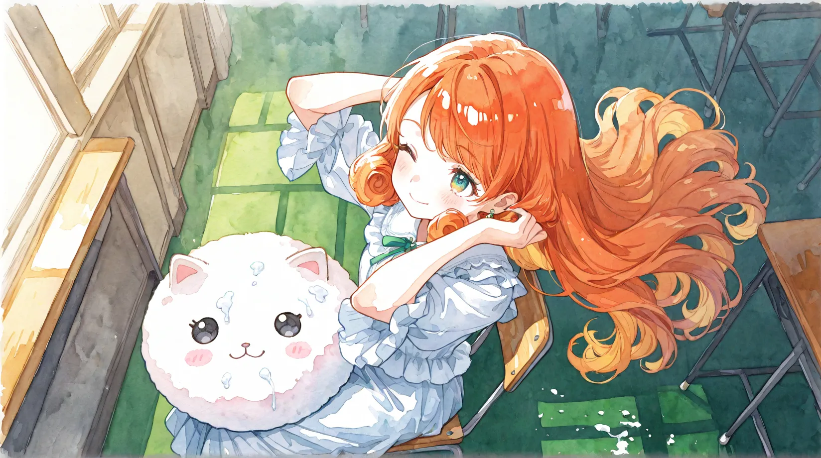 Energetic Red-Haired Girl Posing