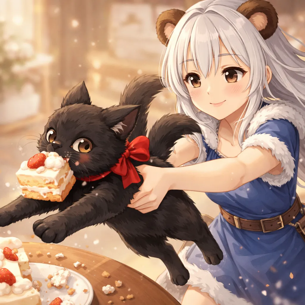 そして次の瞬間には、机の上のケーキをしっかりくわえていた。