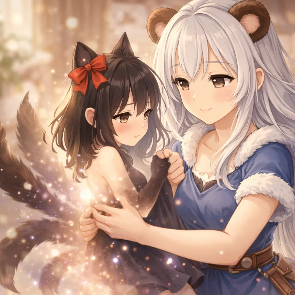 赤いリボンの、小さな猫又。