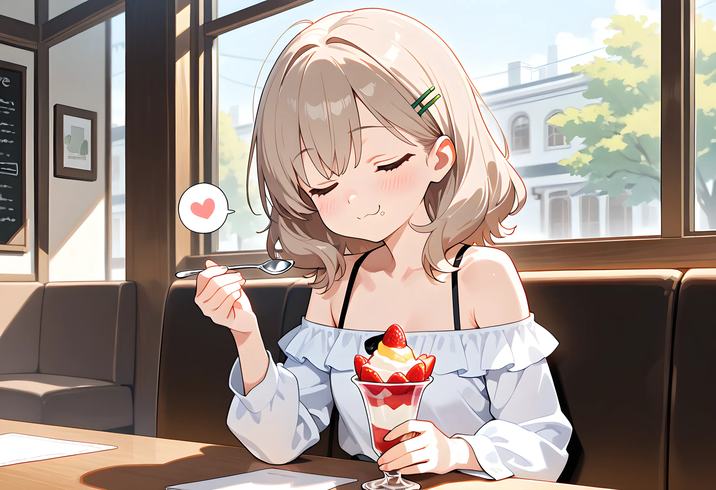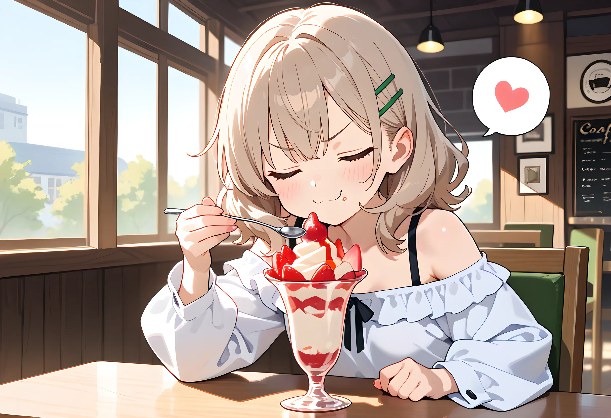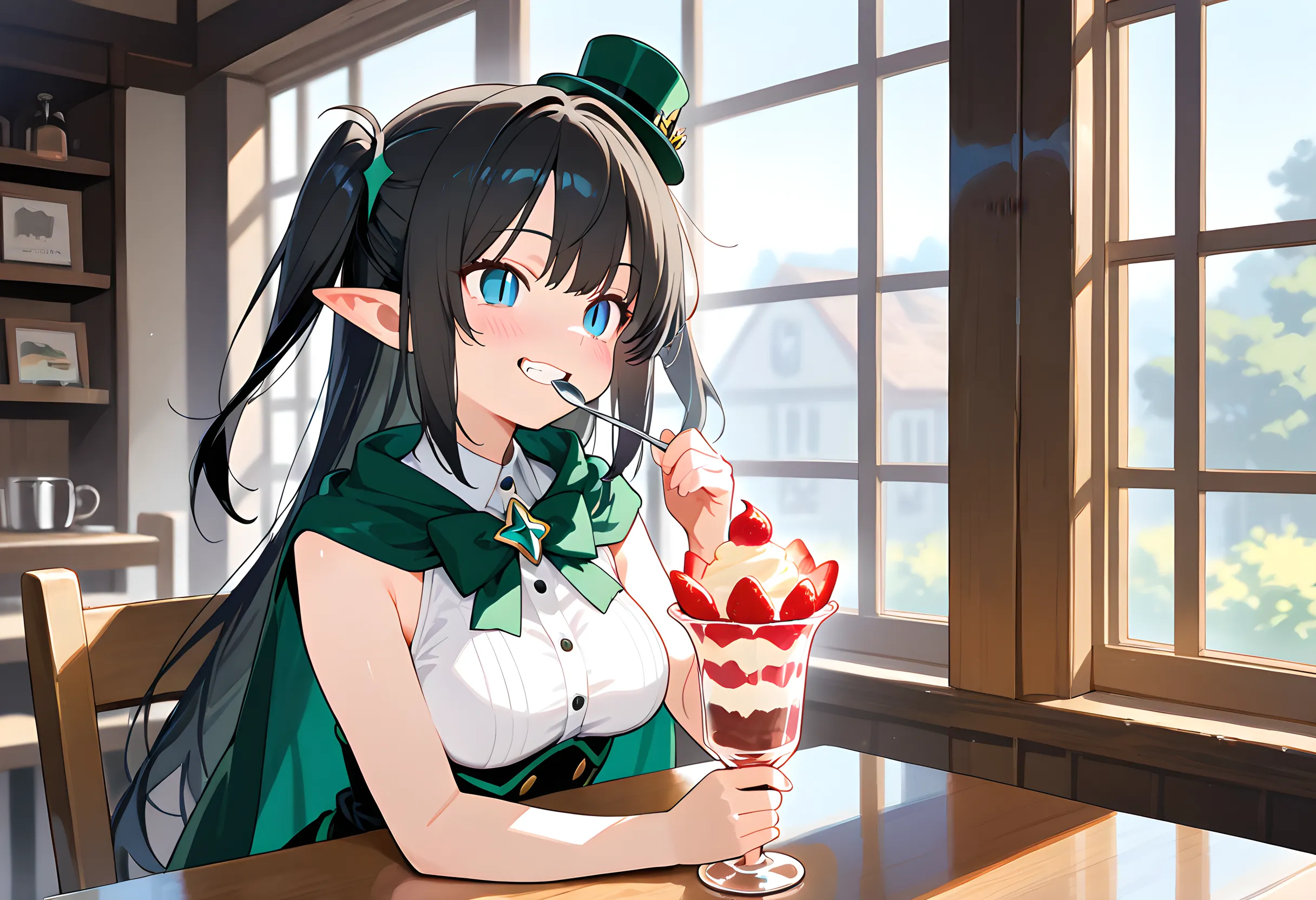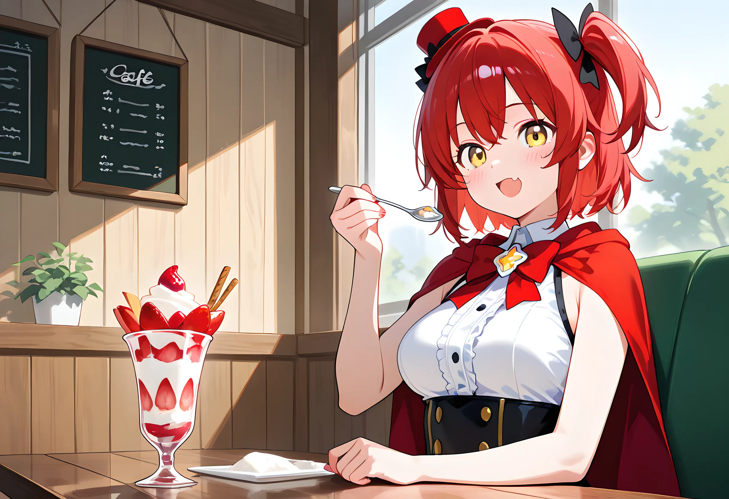 変身後はいつも殺伐とした戦い(ただしたまにコメディ的やりとりもある)ですからねぇ。 6枚目の『暗緑色の魔法少女』はまだ未登場で、全体通しての中盤ほどで登場になる予定の『3人目』です。キャラ解説をする事自体が展開の重大なネタバレになりかねないゆえに、キャラクター紹介ページにも載せられなかった子ですので、登場を楽しみにしておいてください。 神木楼花のふわふわした雰囲気は、今回の【パフェ】にマッチしていると思ったので連れてきました😊 通っぽいコメント・・・そうですねぇ。「初摘み苺のフレッシュな酸味が、濃厚生クリームの重たさをゼロにしている・・・!」とか? 楼花のスピンオフとなると、仕事中なら『美容院に来た変な客』とかで、プライベートは『甘味食べ歩き』とかでしょうかね。