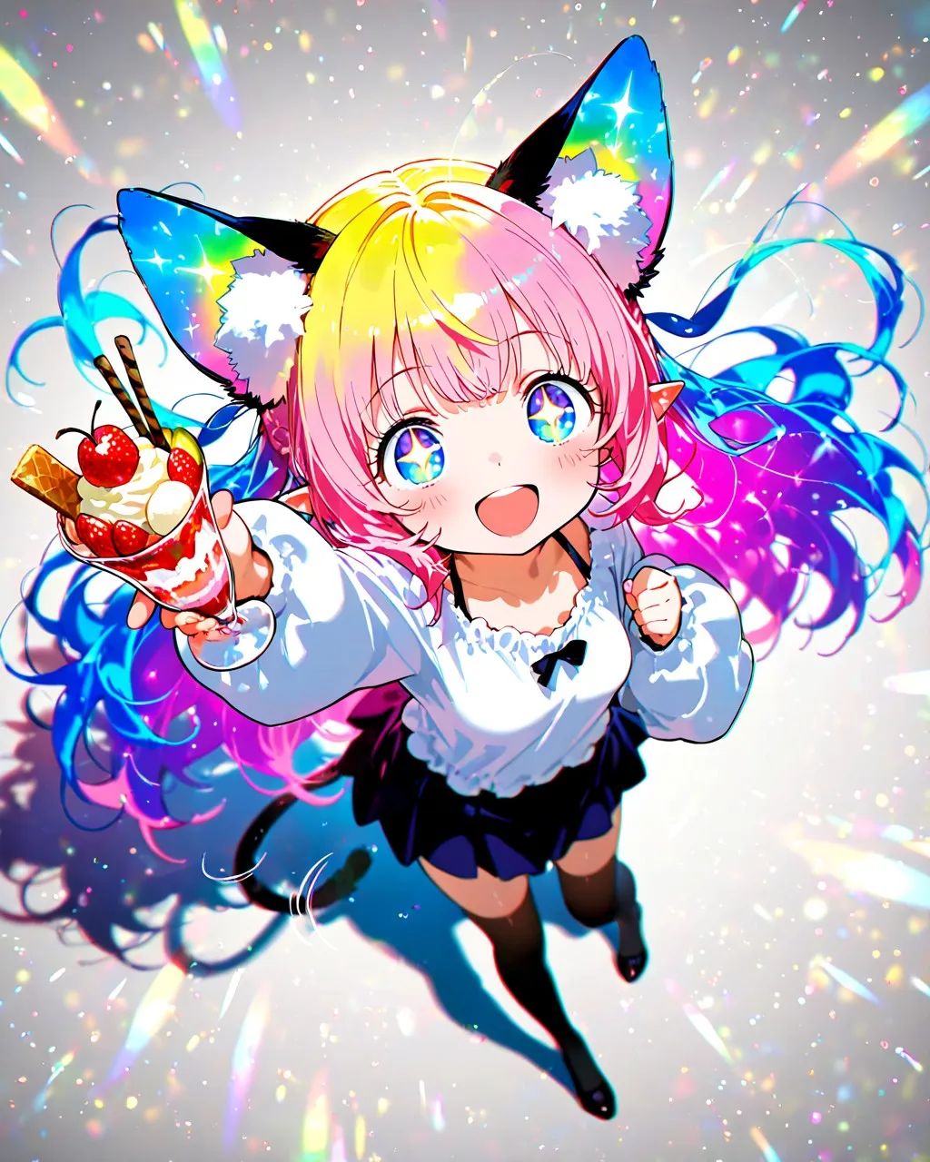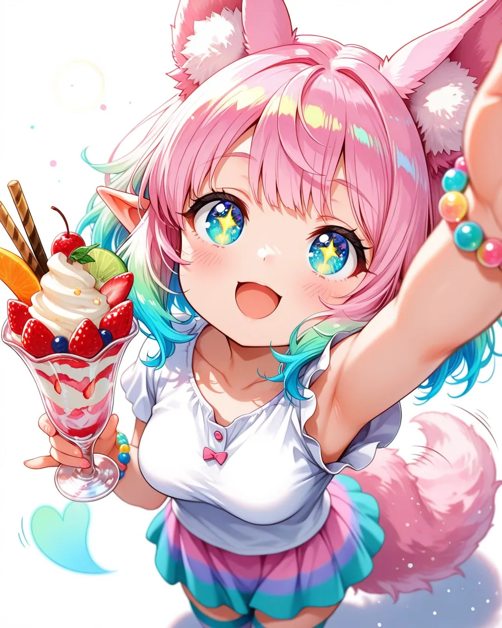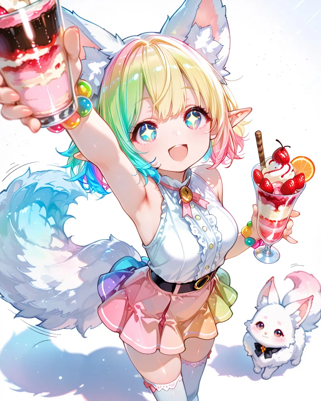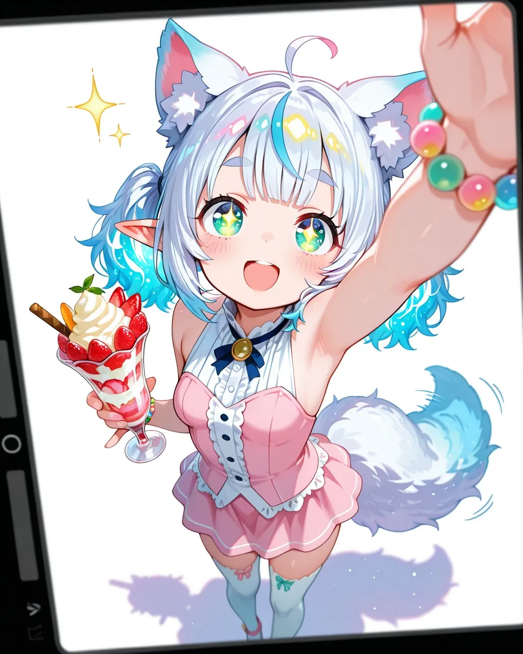 美味しそうなパフェを手にしてテンションが上がったケモ耳エルフさん