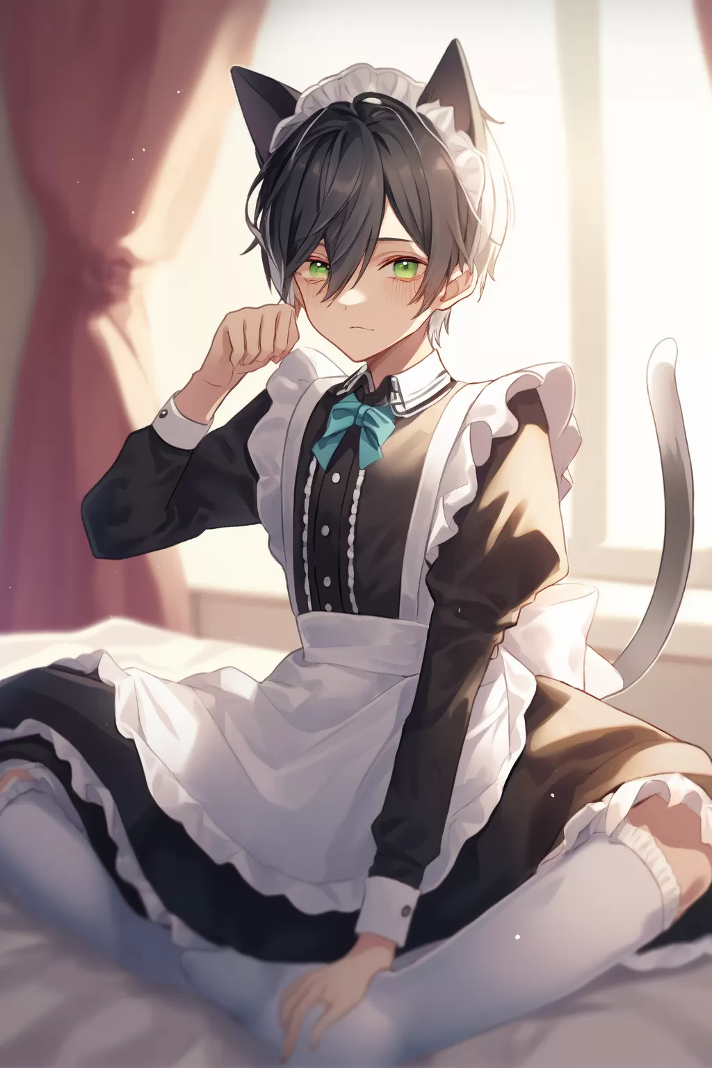 猫耳女装メイド男子+猫耳和服男子