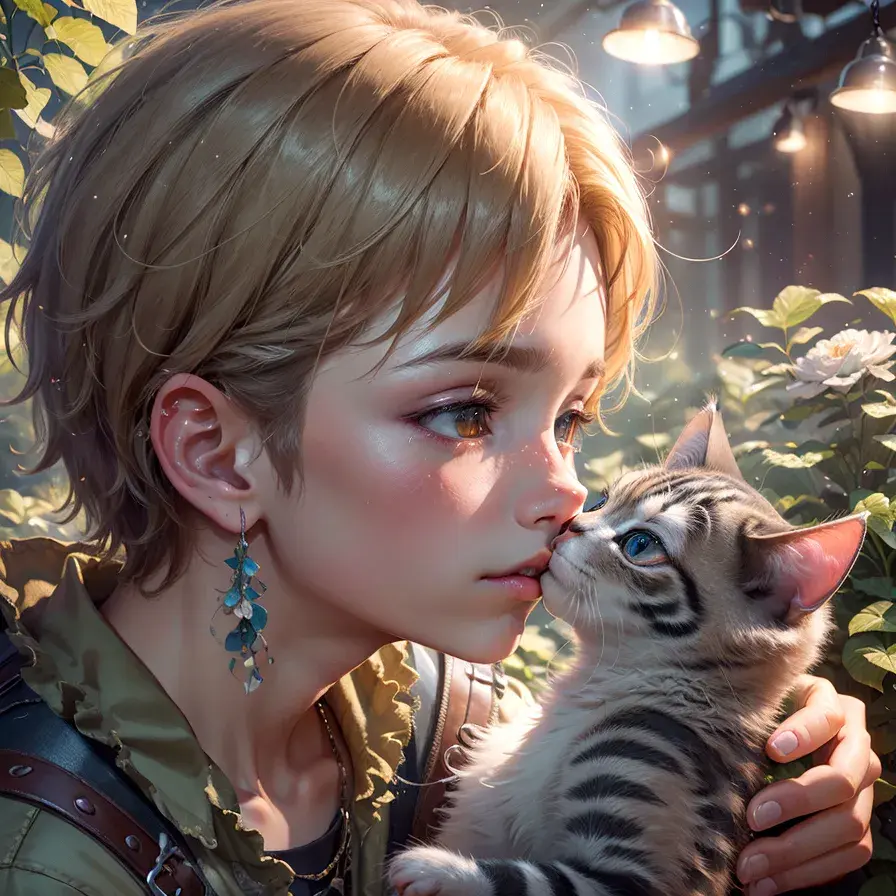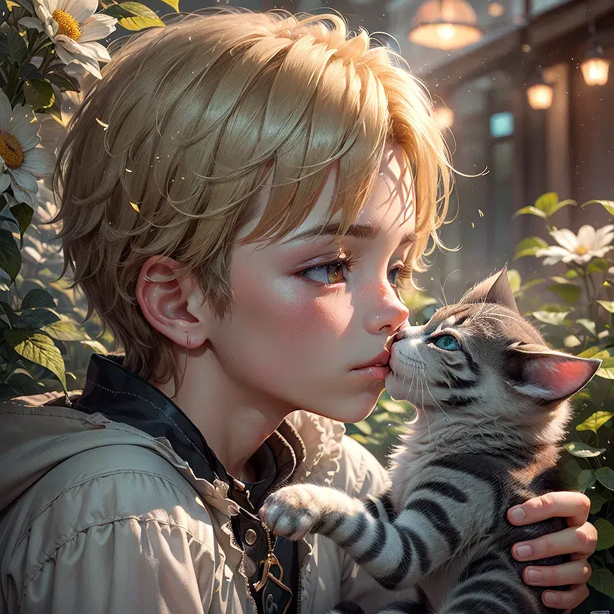 cat and boy