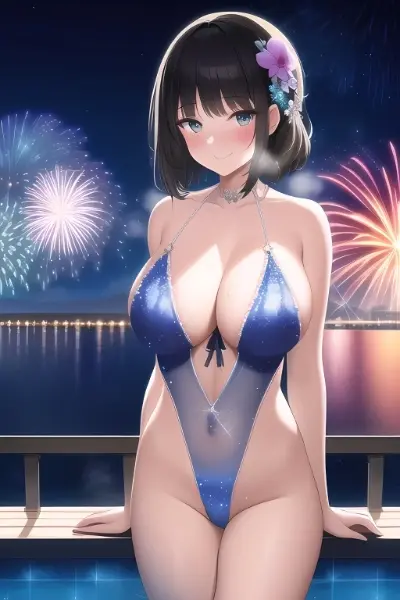 花火と水着ふたなりさん