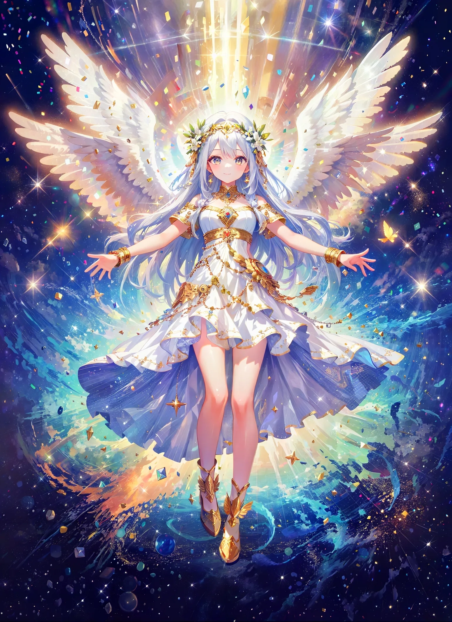 (masterpiece, best quality:1.3), illustration, (extream detailed), one girl, angel Descending