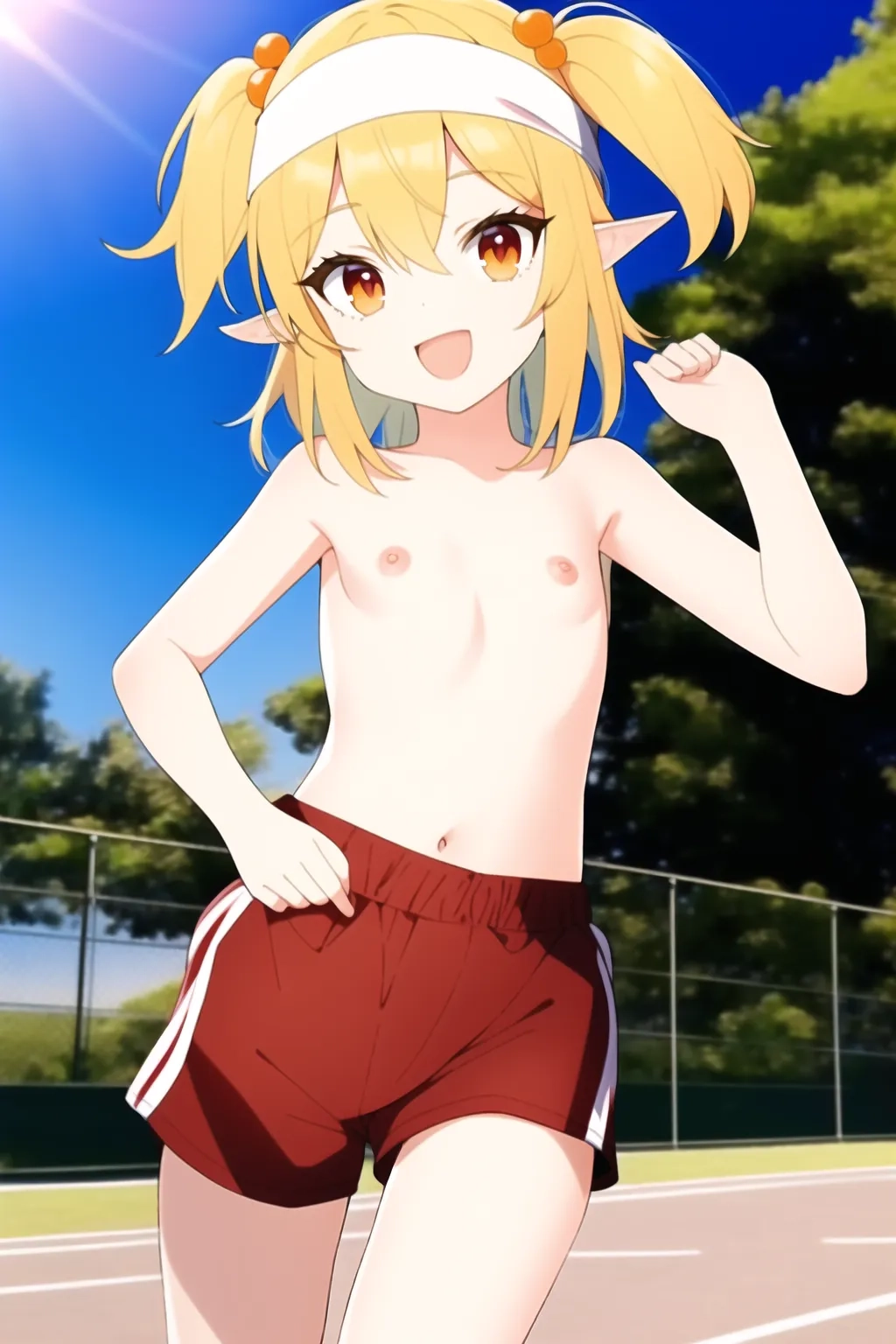 Blonde elf running topless