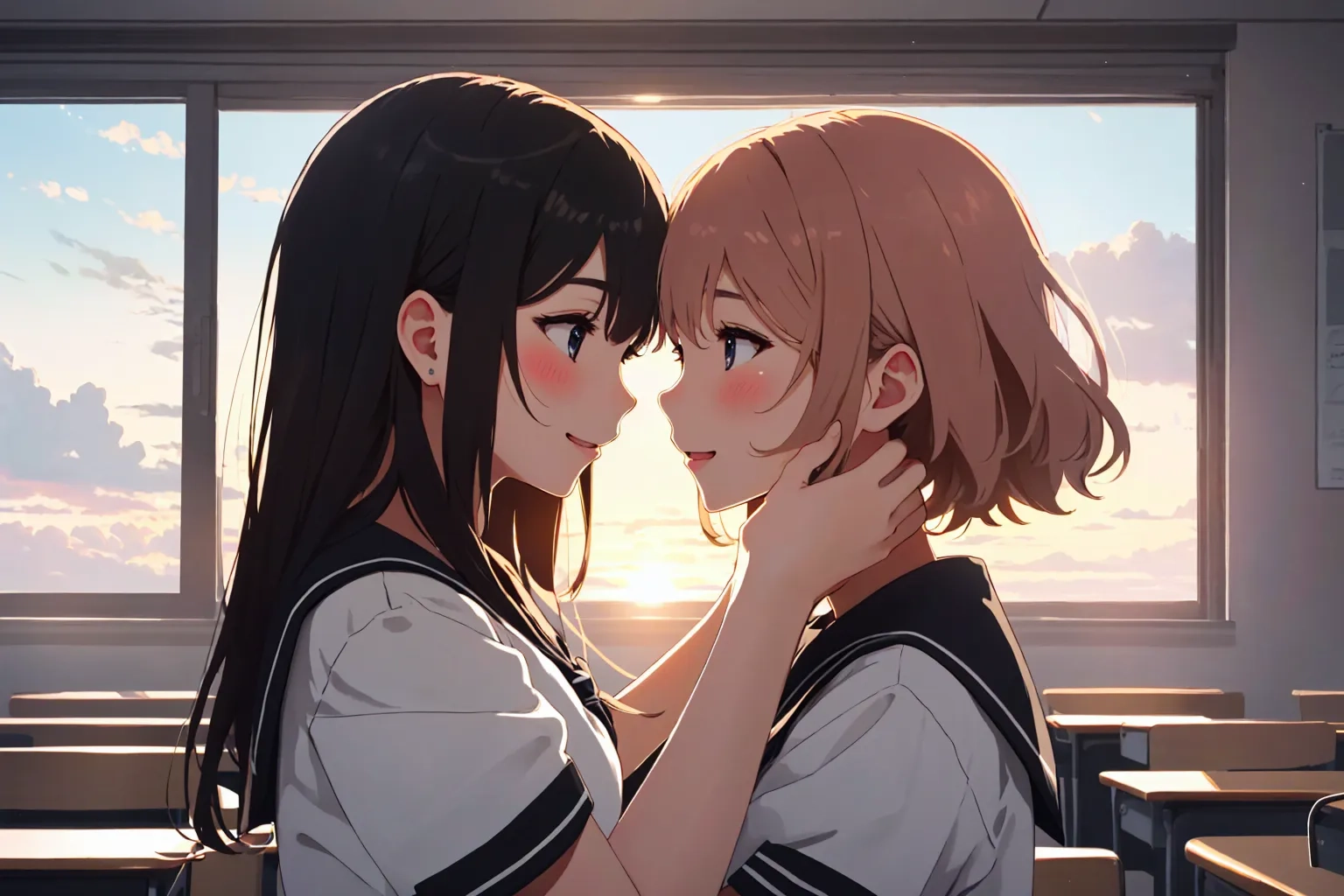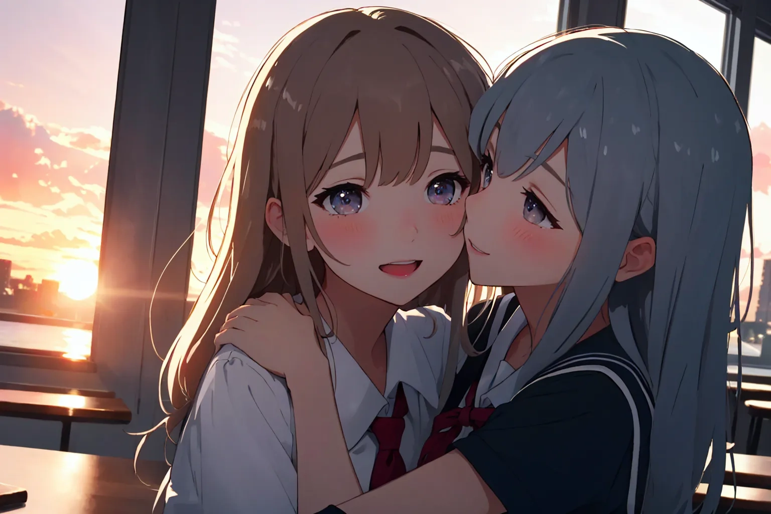 放課後夕暮百合抱擁