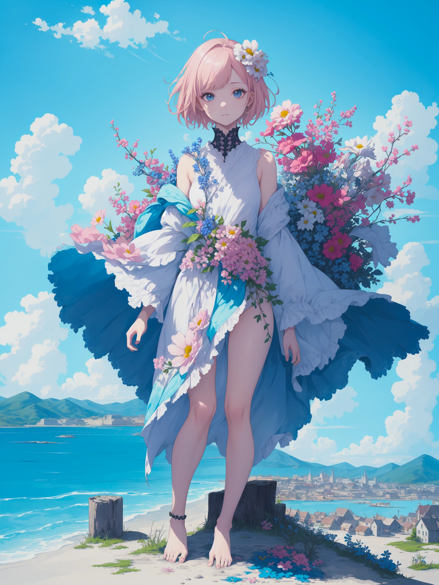 sea and flower girl