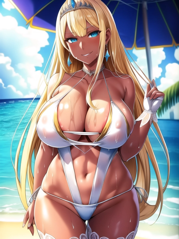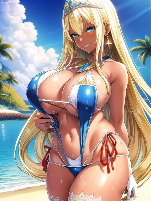 金髪褐色スリングショット水着