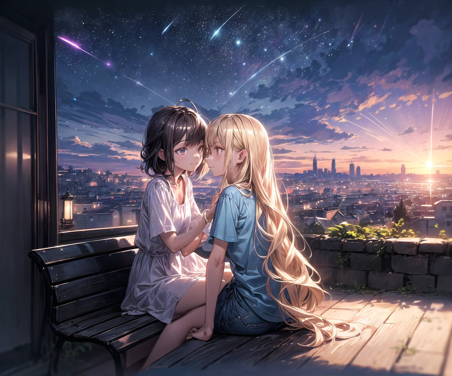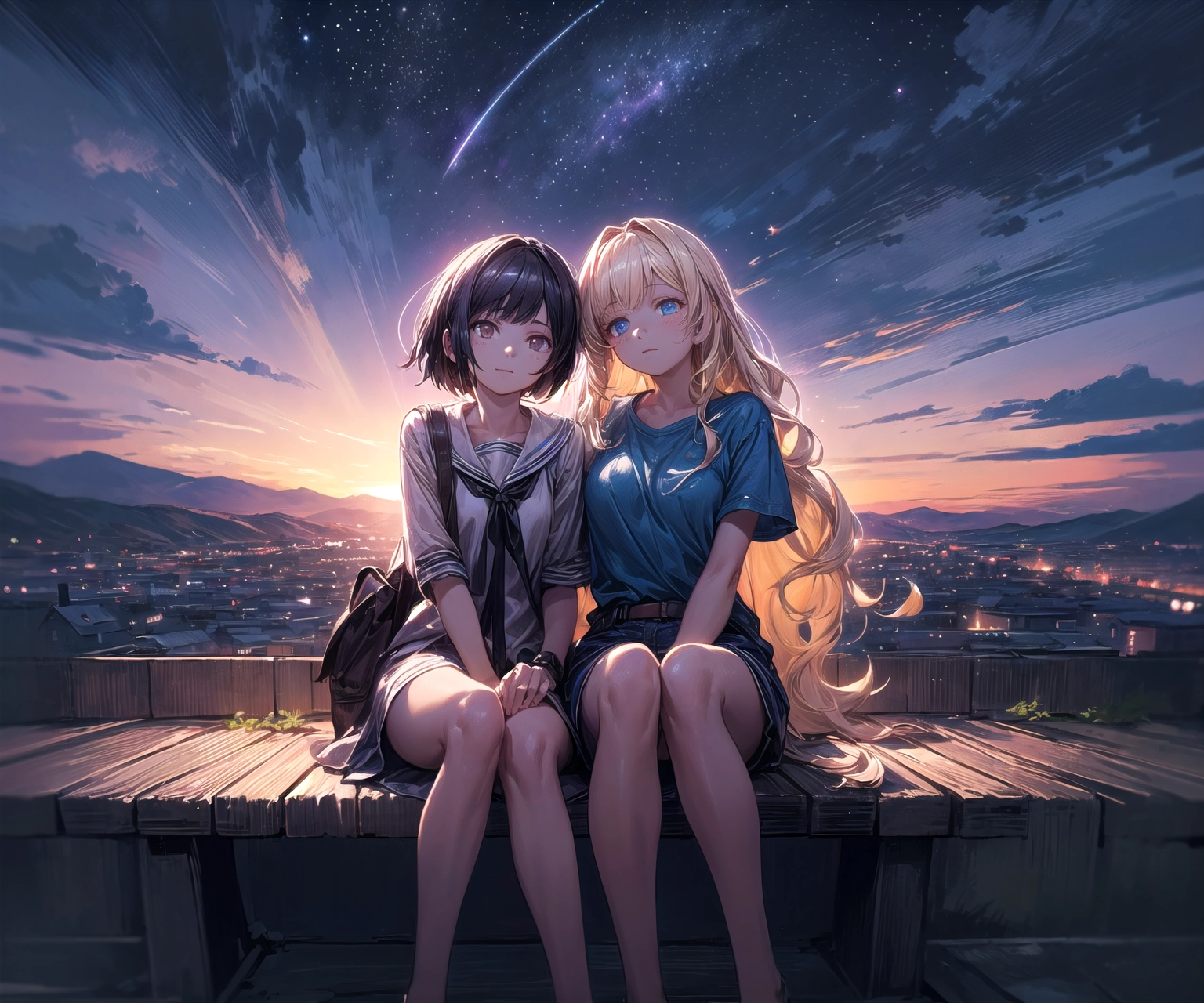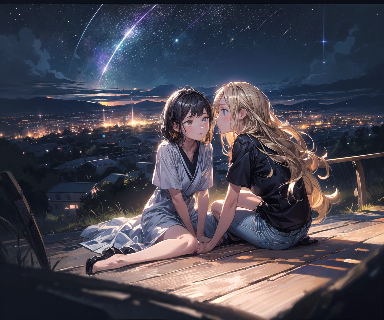 Black hair & blonde, I went to see the night view 2