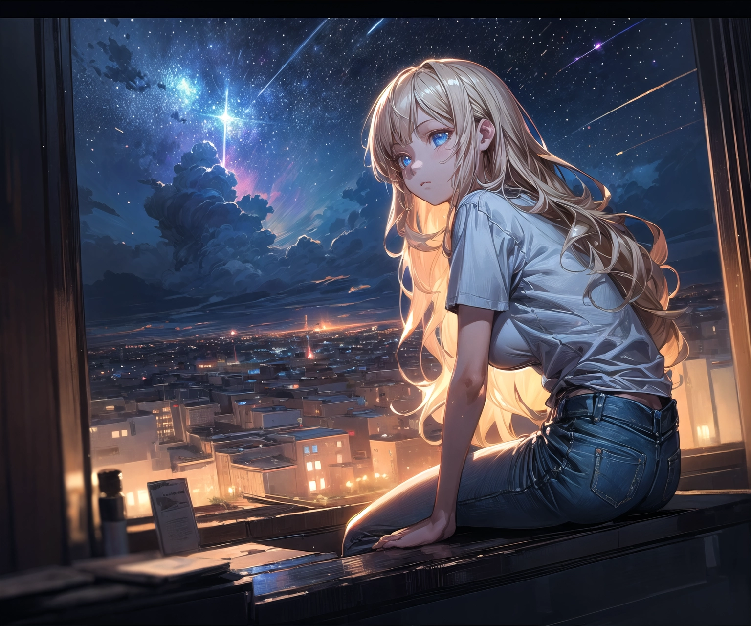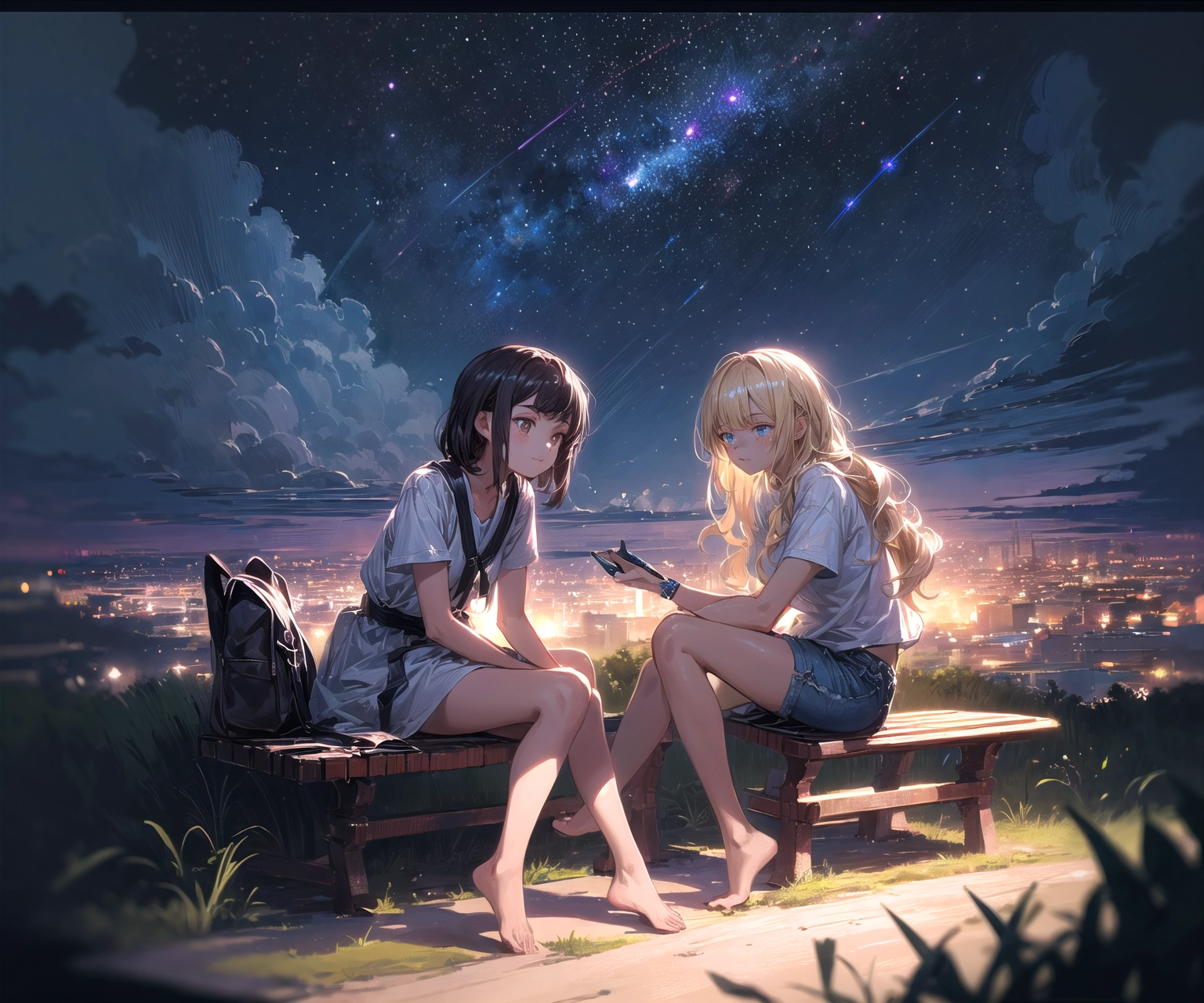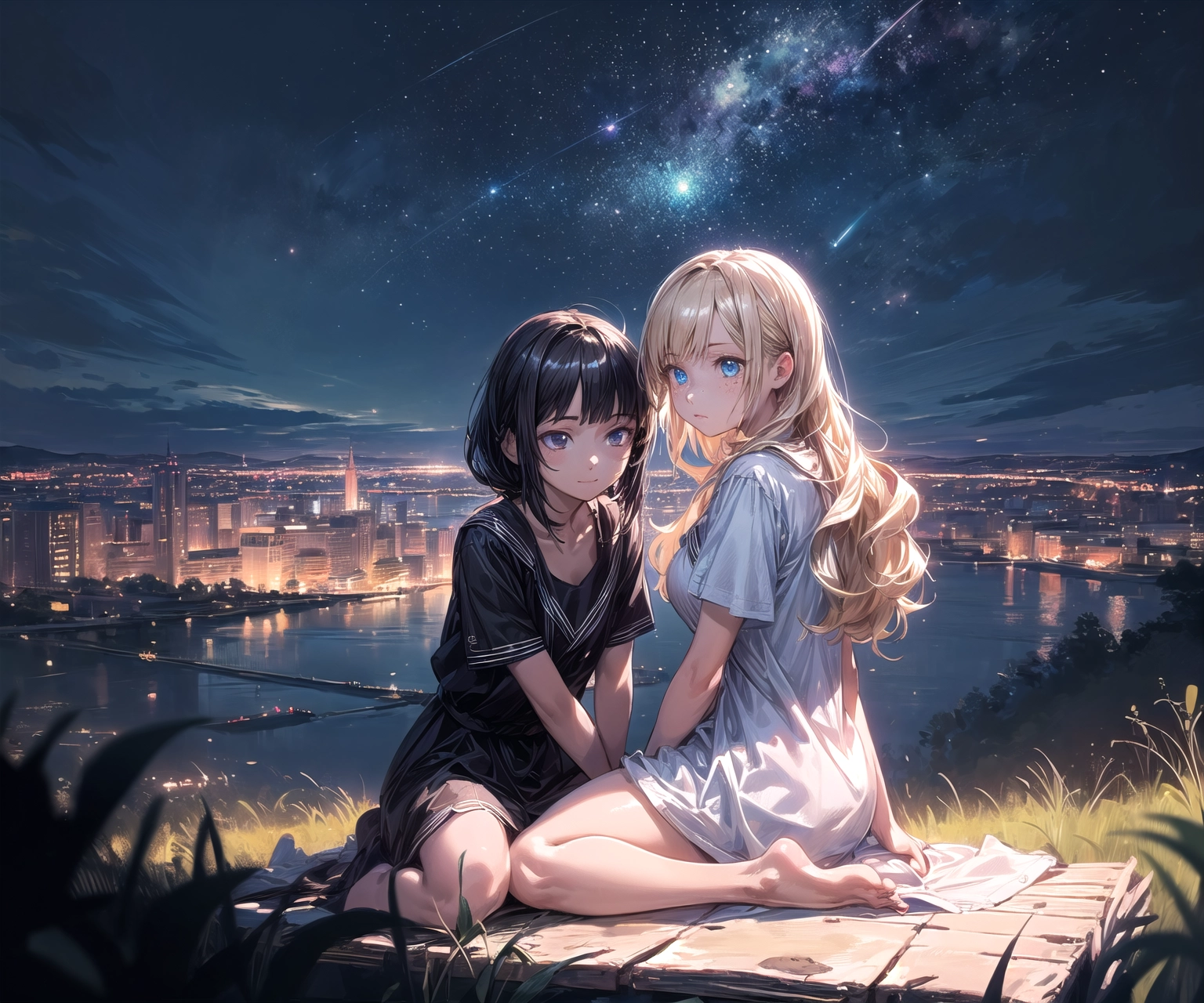 Black hair & blonde, I went to see the night view 2
