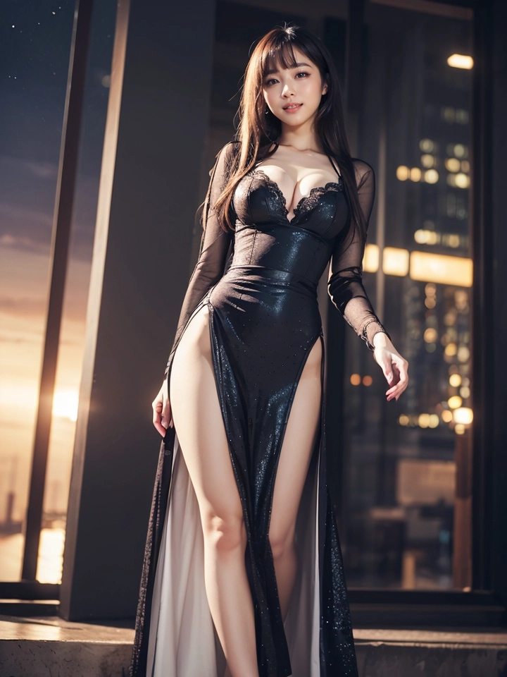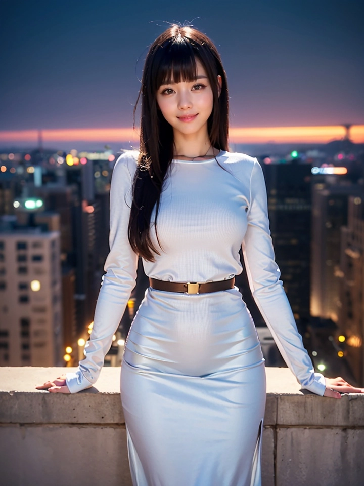City streets and her in a dress