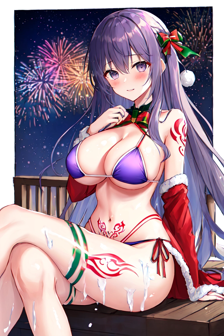 I wore a Santa bikini🎅👙 at Moa︎💞's fireworks display🎇😍💞︎🫶🏻