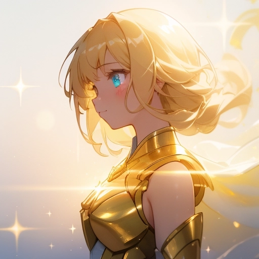 A girl lives with golden armor in a glittering world